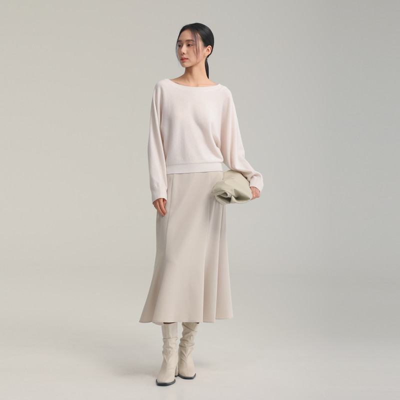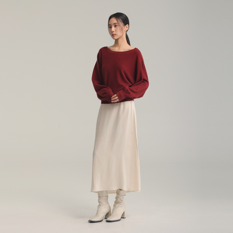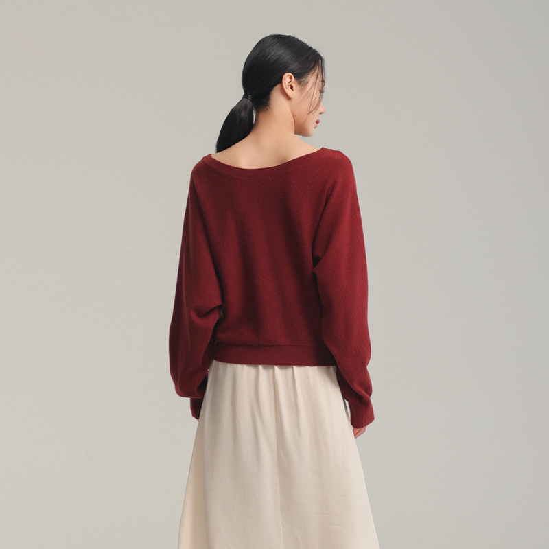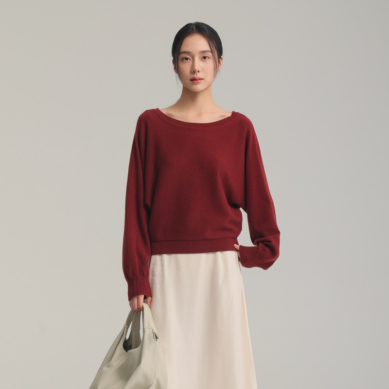 AIRIQI春季新款休闲慵懒风宽松连袖一字领全羊毛针织衫AH51MS112