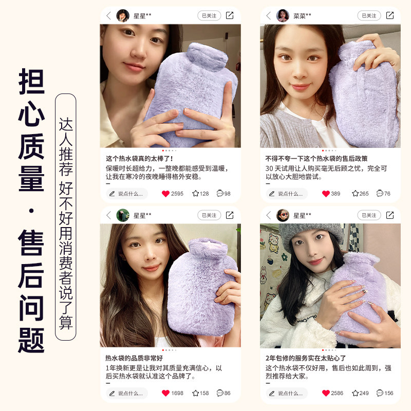 热水袋暖水袋注水式毛绒暖手宝暖脚被窝专用小号暖手袋暖宝宝热敷