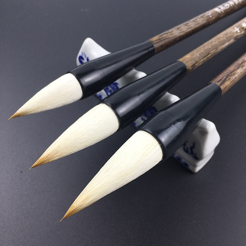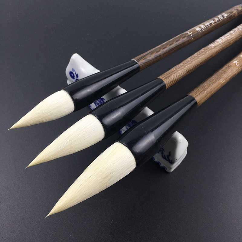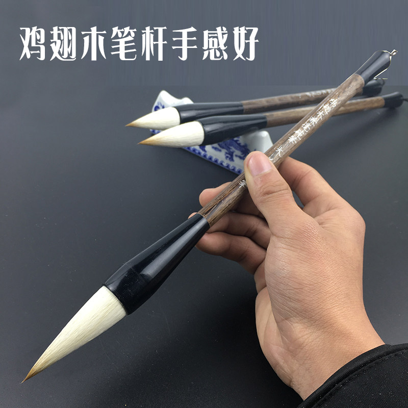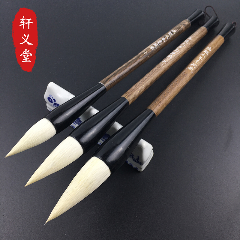 轩义堂鸡翅木兼毫蒜头笔短锋毛笔 大中小号斗笔短锋纯羊毫大楷小篆书中国画羊豪笔隶书毛笔套装对联大字创作