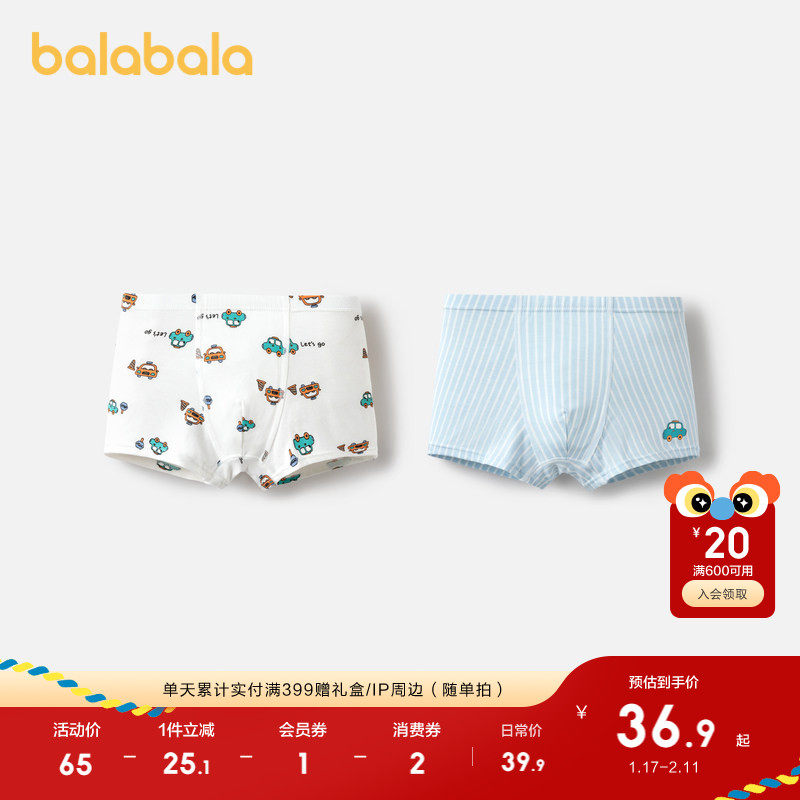 巴拉巴拉男童内裤平角儿童四角短裤宝宝抑菌裆两条装舒适柔软萌趣
