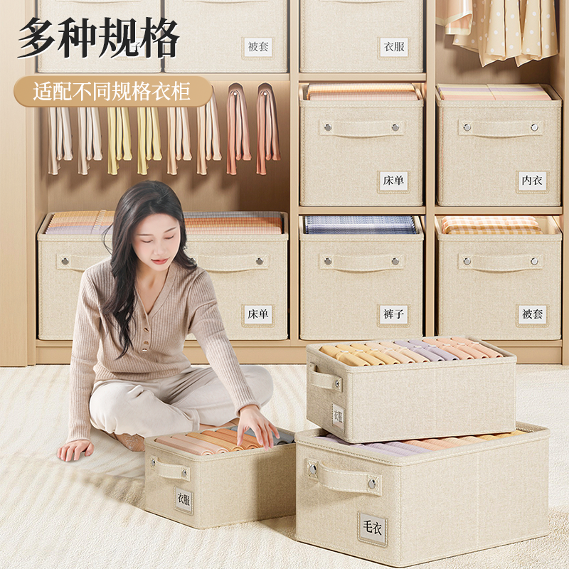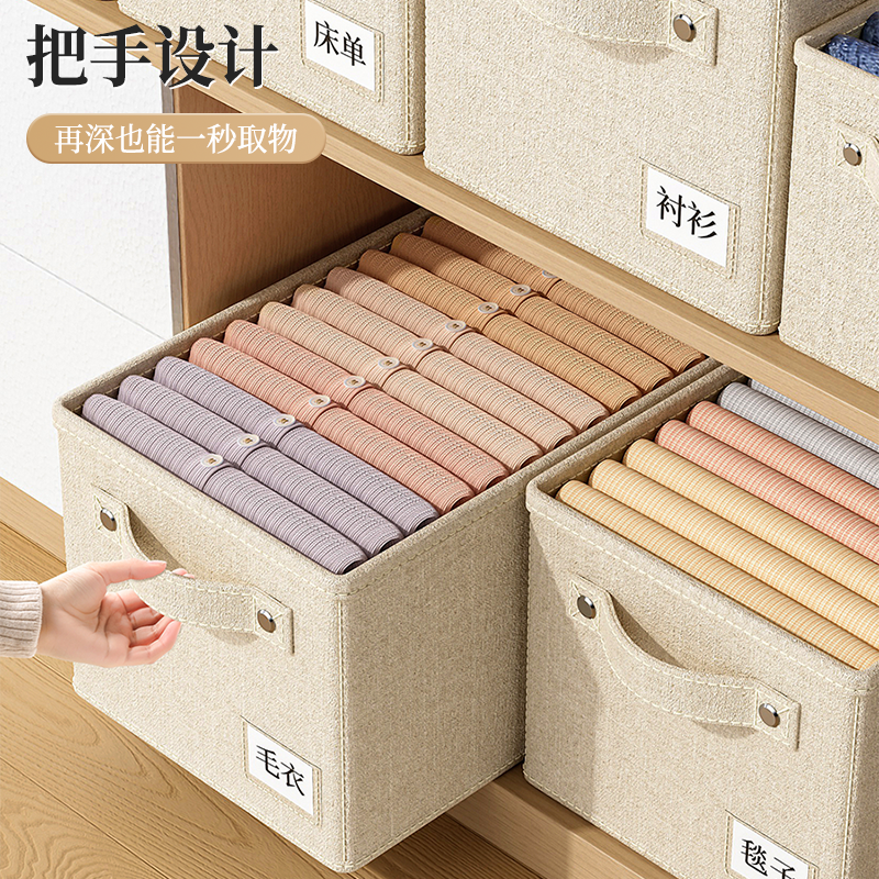 抗菌棉麻衣服收纳盒家用衣物裤子整理箱可折叠储物筐衣柜分层神器