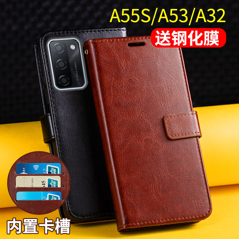 适用oppoa55s手机壳A32翻盖式皮套a53保护套0pp0钱包带盖全包防摔5g外壳oppa55s插卡皮夹A55S磁扣步步高新品