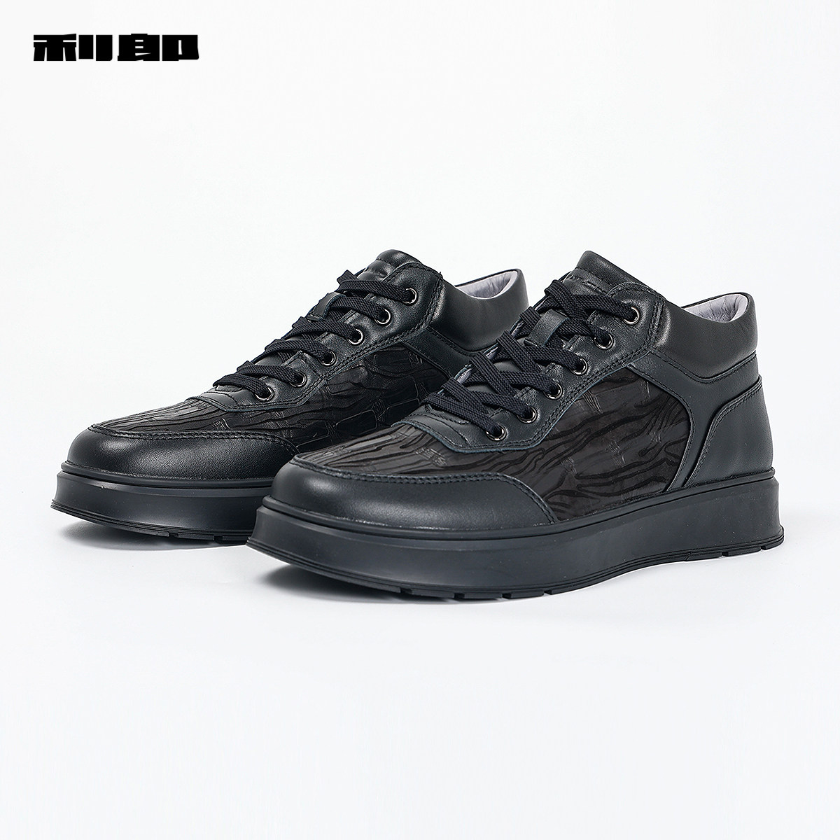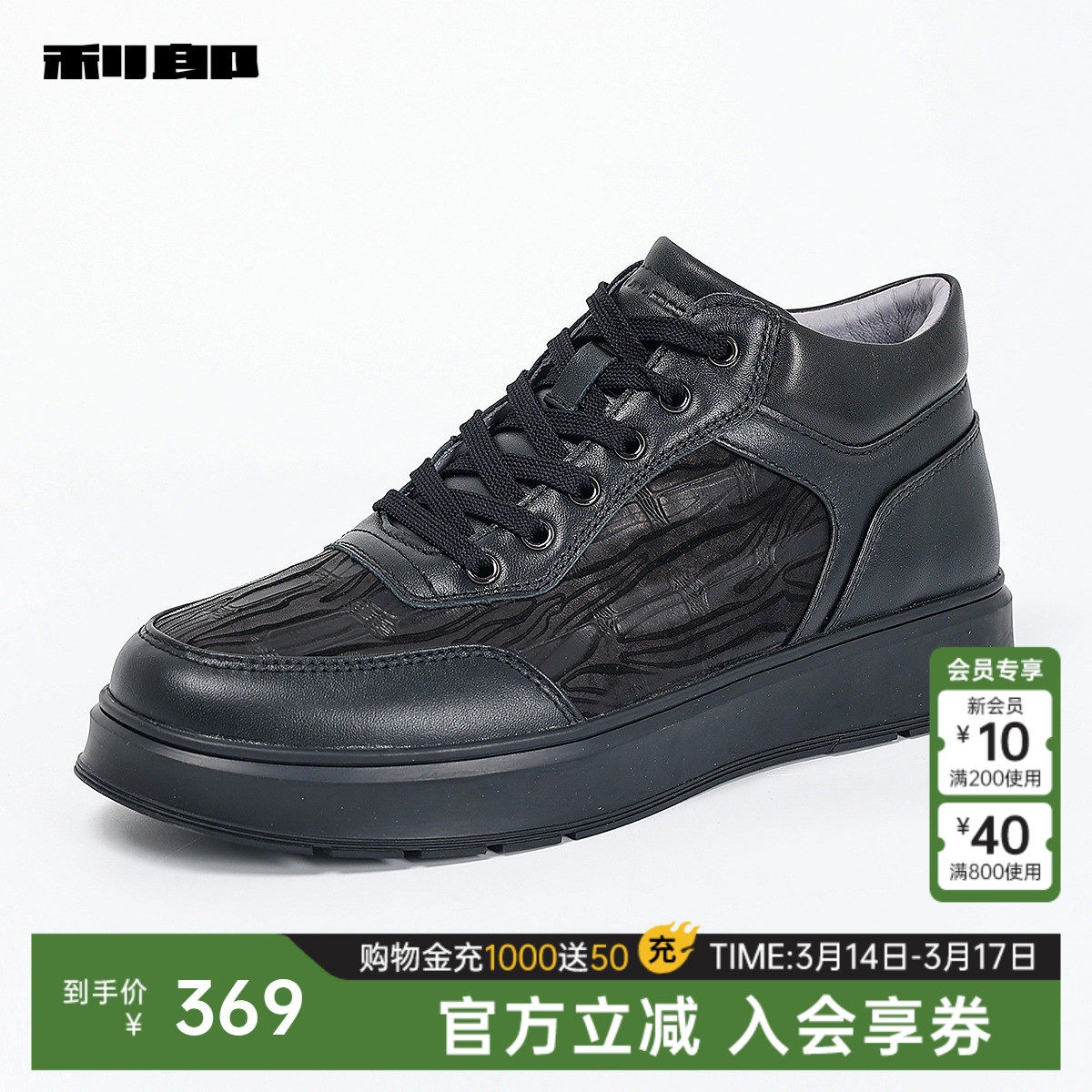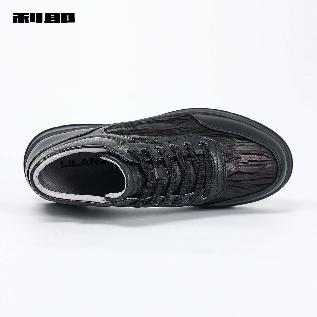 利郎官方 牛皮革休闲鞋男商务时尚压花春秋款新款黑色鞋子男
