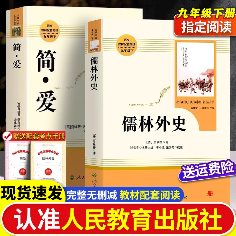 简爱和儒林外史人民教育出版社正版原著九年级下册人教版语文书教材配套完整版儒林外史九年级必读人教版原著九年级下册必读名著