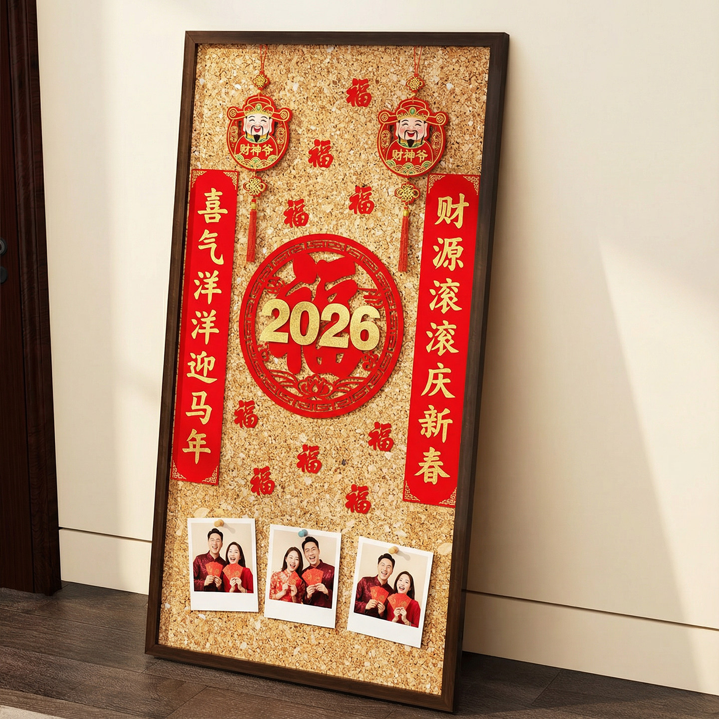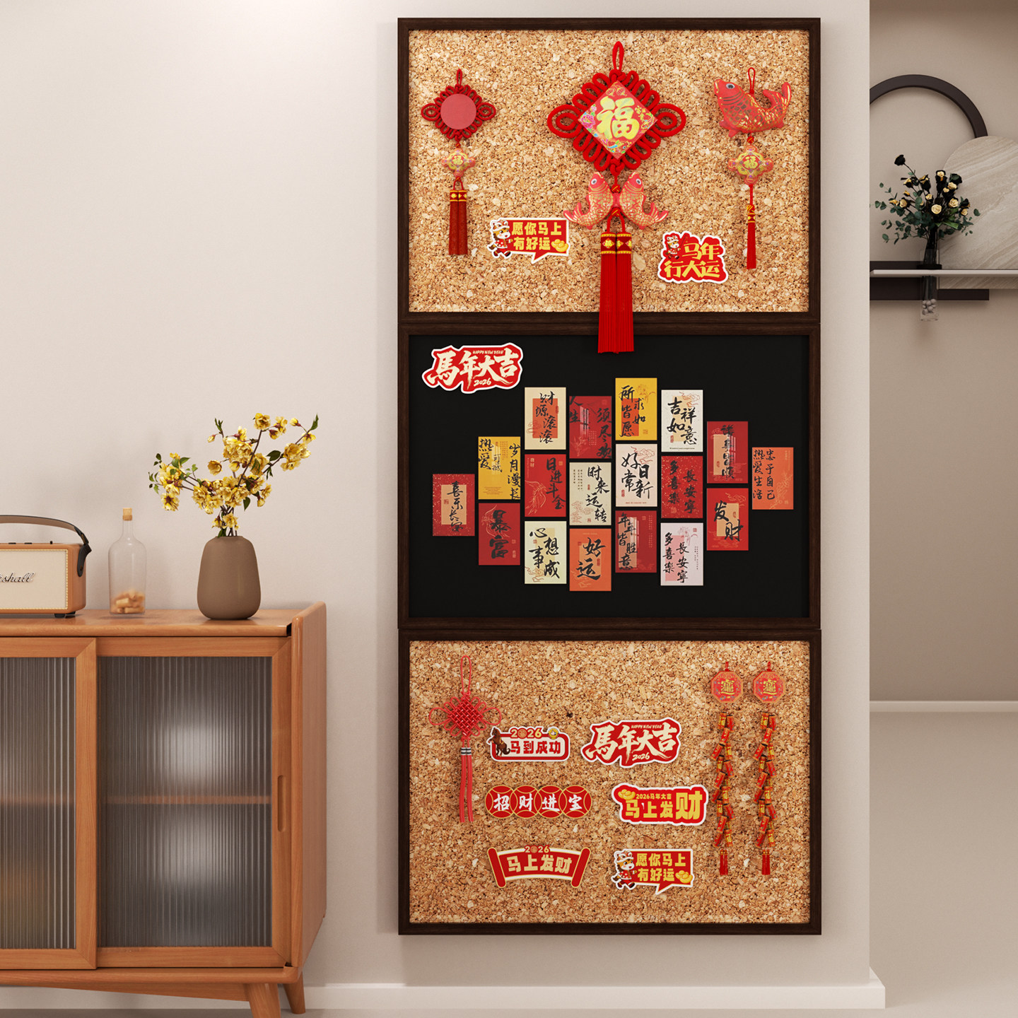 黑板软木板组合磁吸照片墙客厅创意diy背景板磁吸冰箱贴收纳卧室展示板玄关感装饰相片2026展示墙实木小尺寸