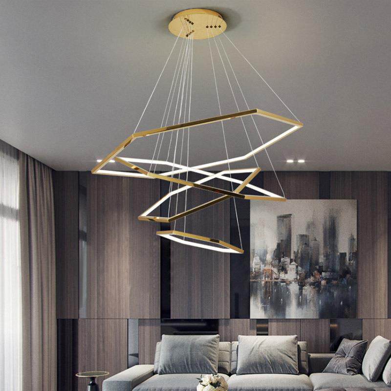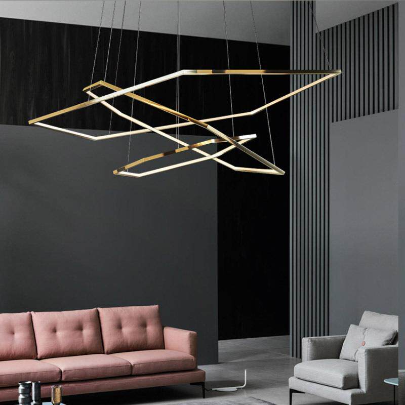 现代轻奢六边形几何吊灯设计师极款极简大气别墅跃层楼梯间长吊灯