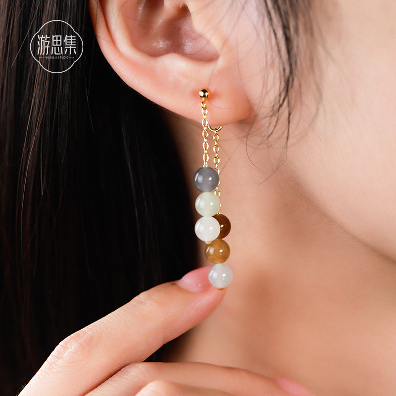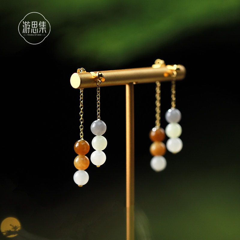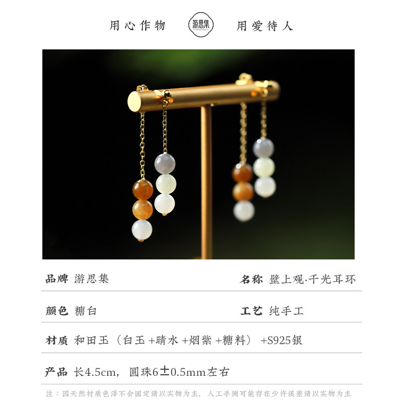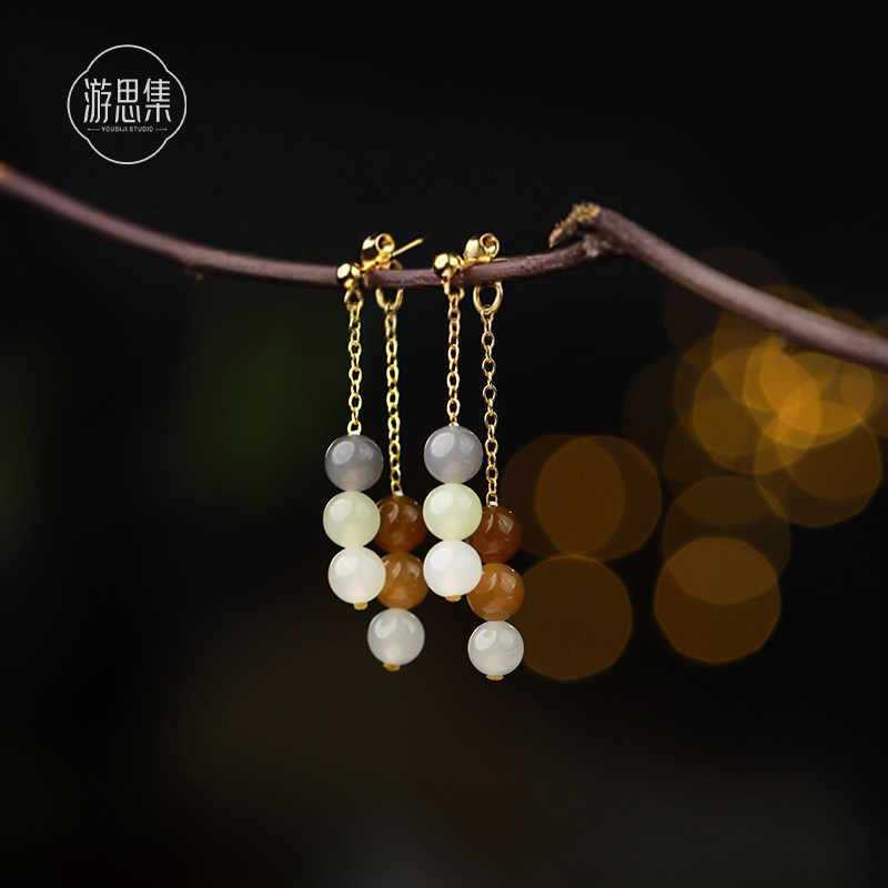 游思集敦煌系列天然和田玉多宝玉石耳环女新中式原创设计小众耳线