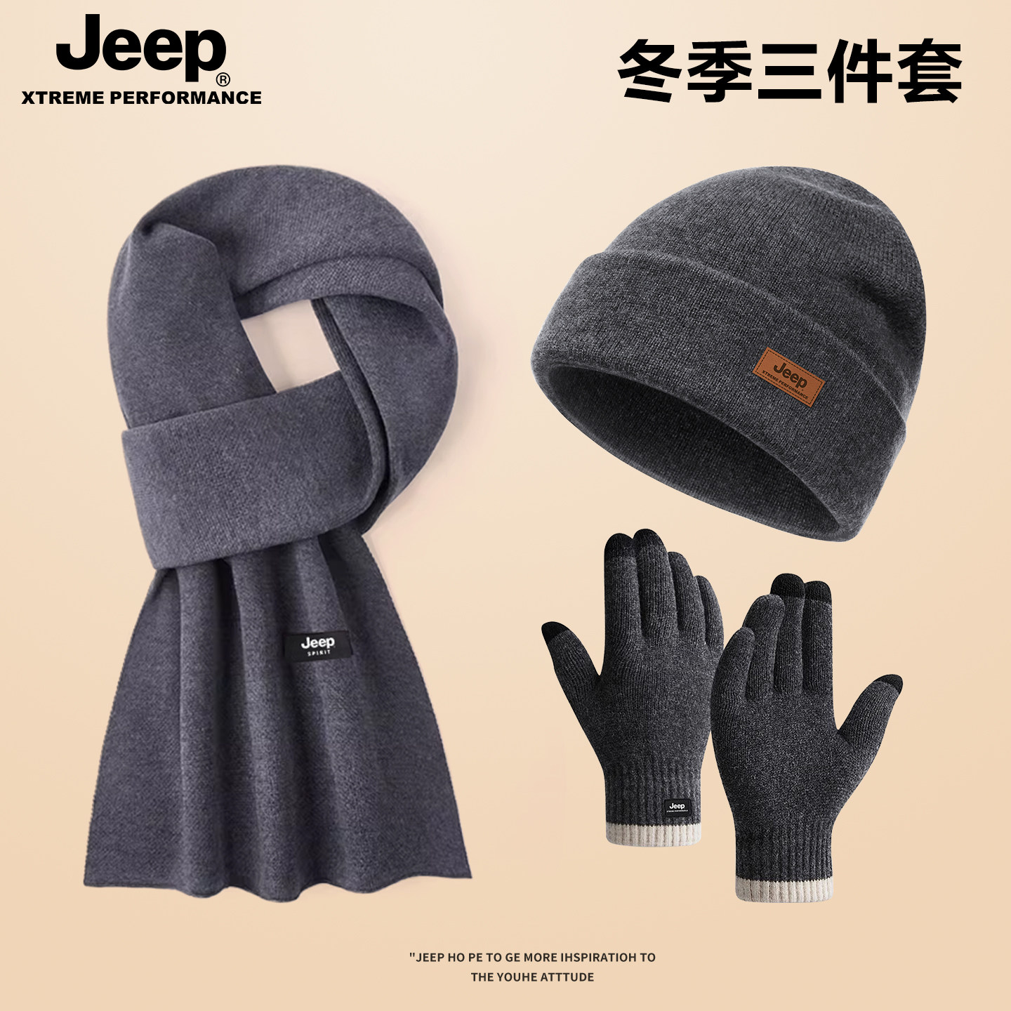 jeep吉普围巾男士帽子礼盒装送男友冬季户外保暖手套针织冬天围脖