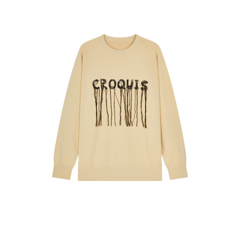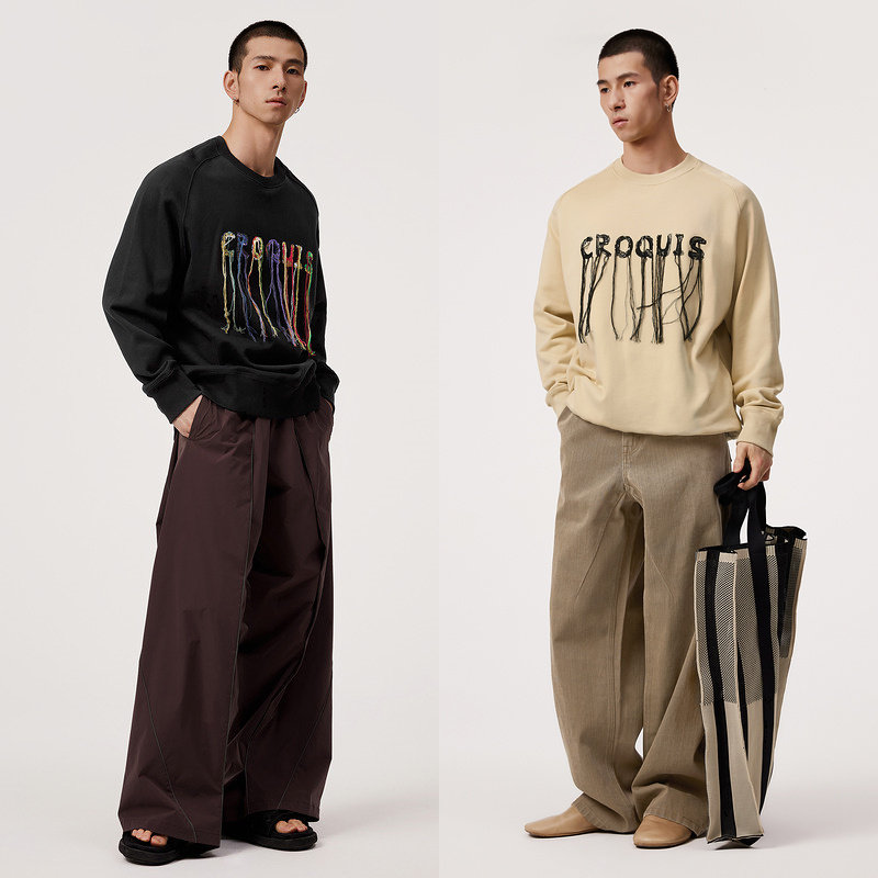 速写男装春秋季新款套头圆领卫衣油画流苏刺绣宽松休闲复古潮上衣