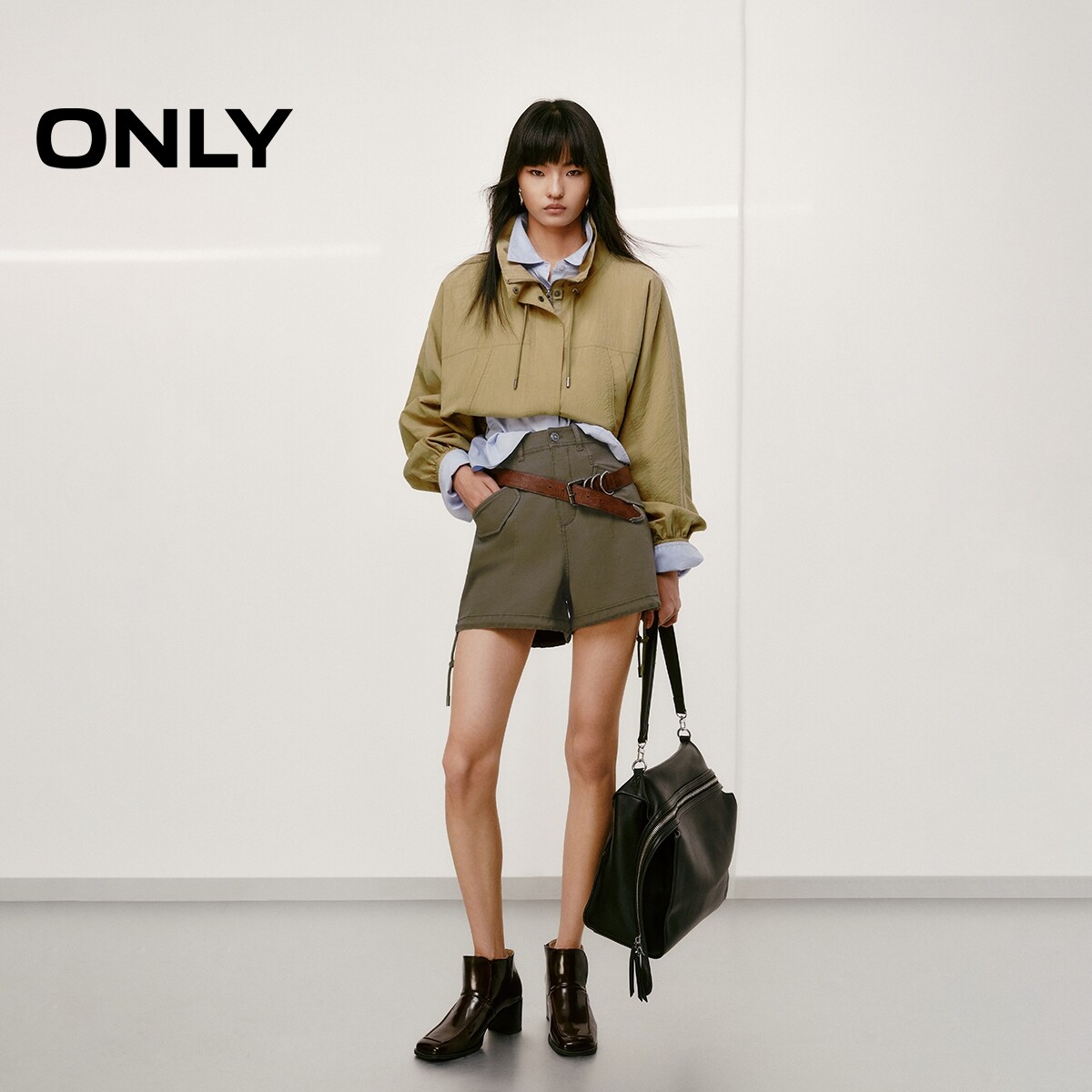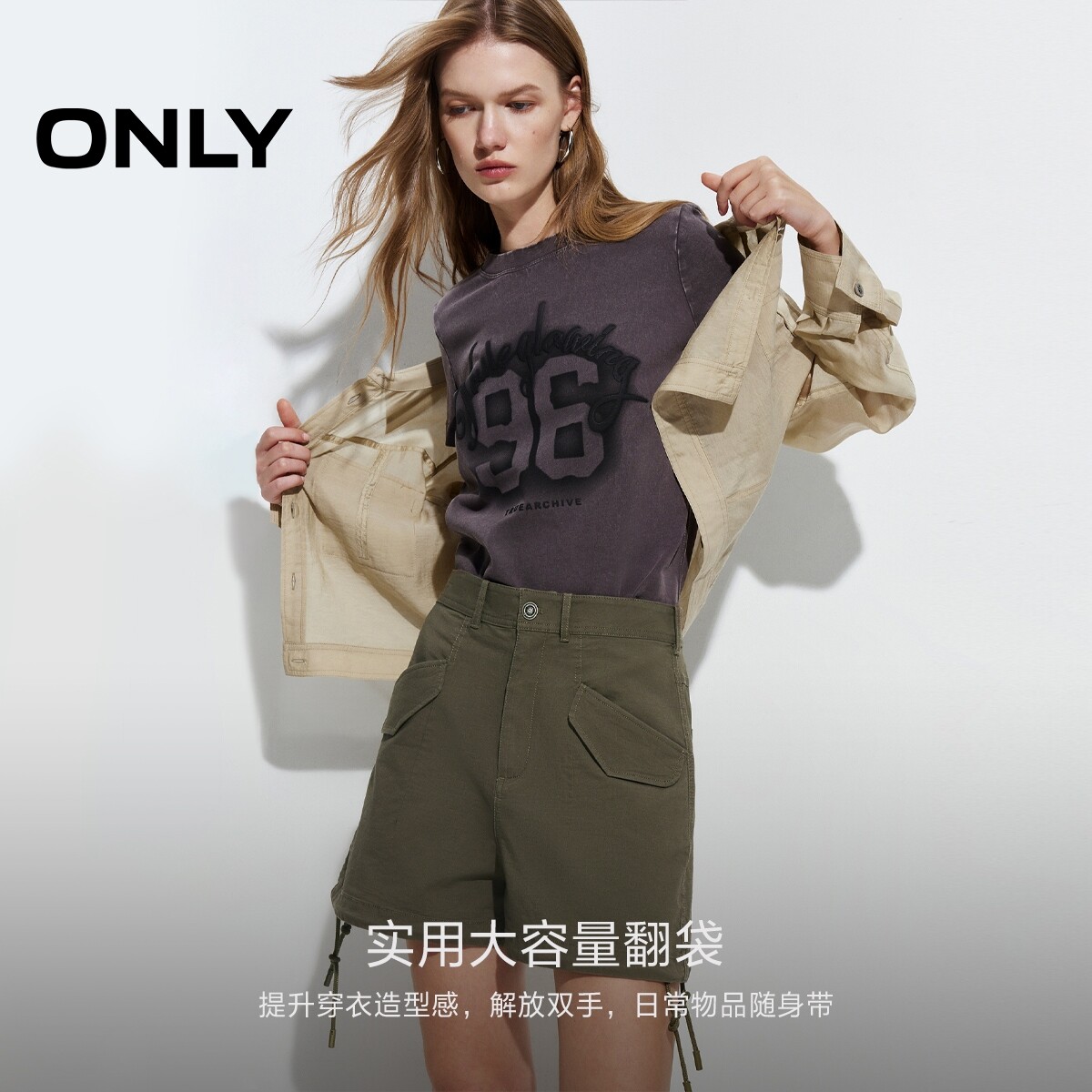 【ONLY奥莱】春夏新款实用口袋装饰抽绳复古扣饰A字短裤休闲裤女