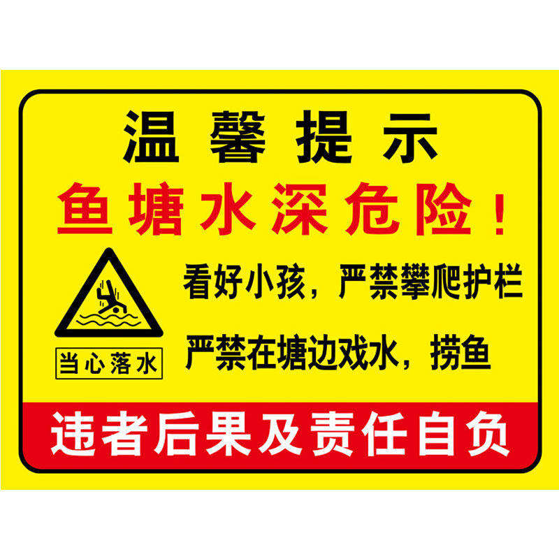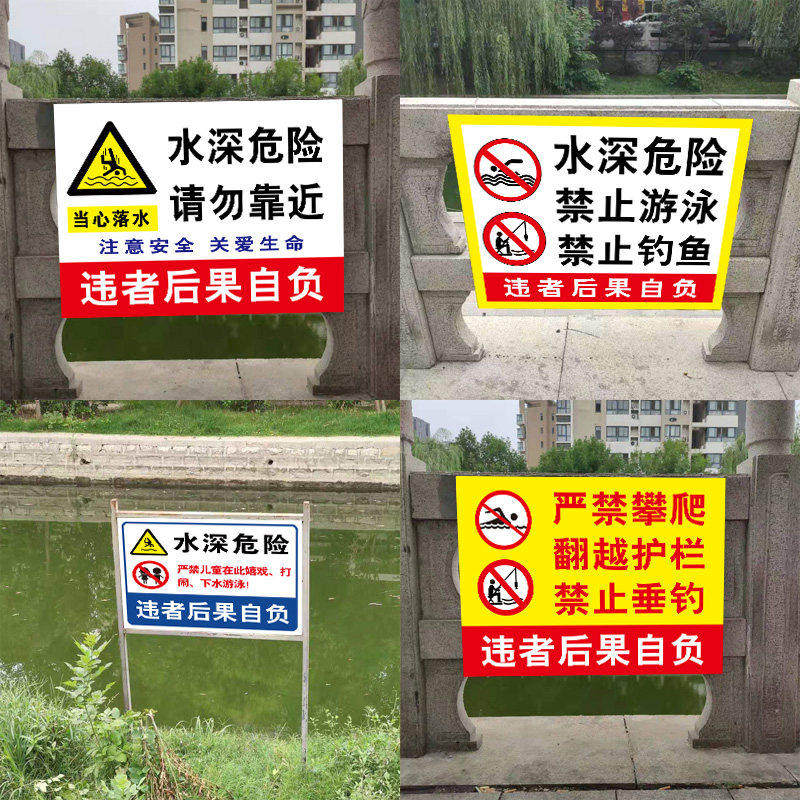 水深危险警示牌挂牌鱼塘提示牌池塘请勿靠近防溺水安全标识牌私人养殖河道水塘禁止钓鱼严禁游泳嬉水水库吊牌