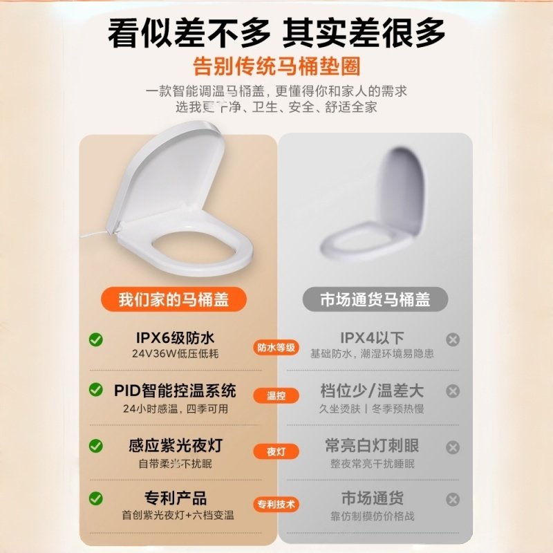 全网热销防溅原厂通用座圈恒温马桶盖家用通用即热式马桶圈坐便器