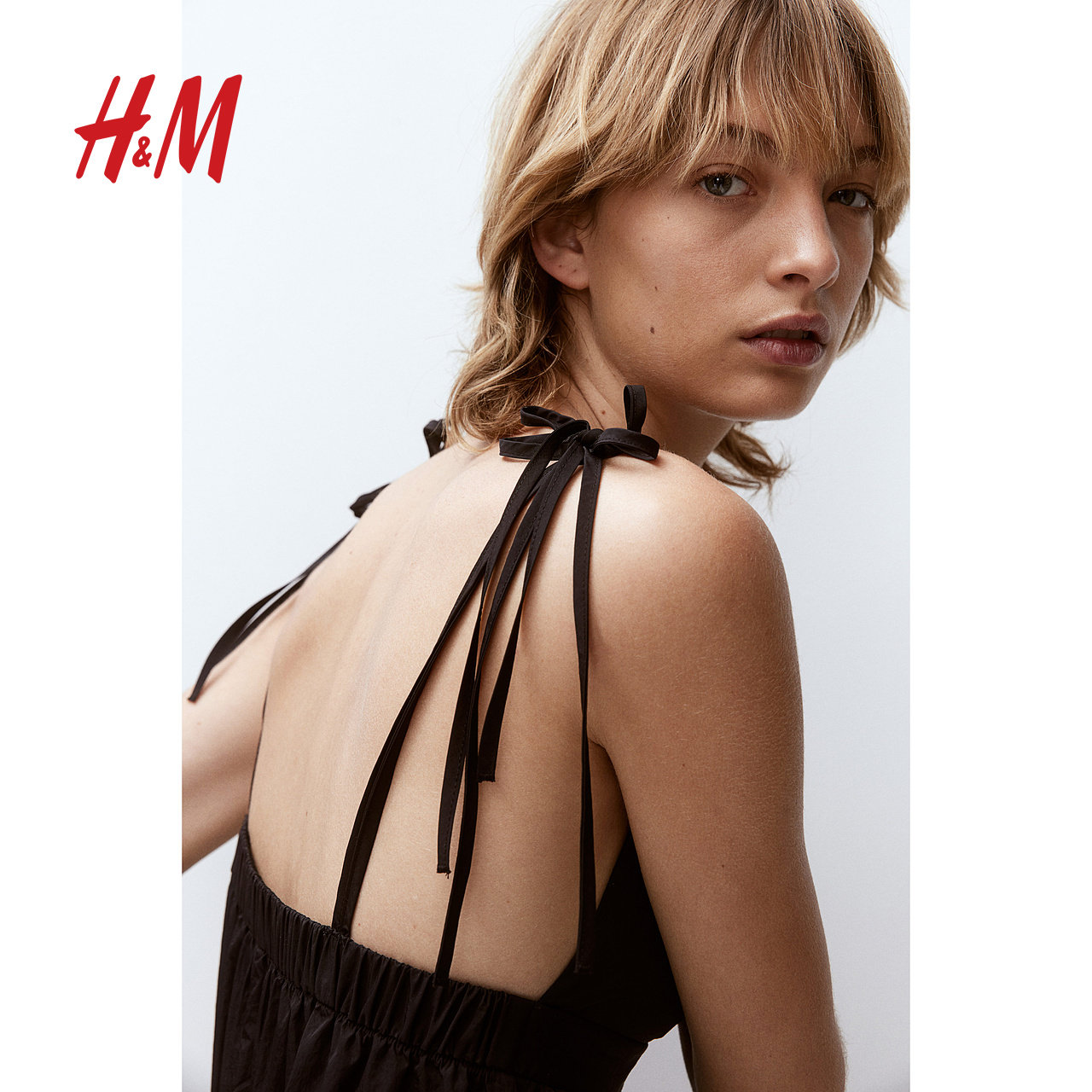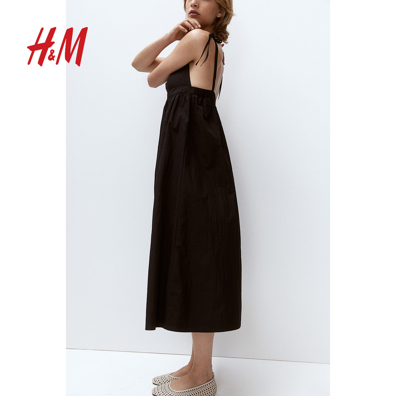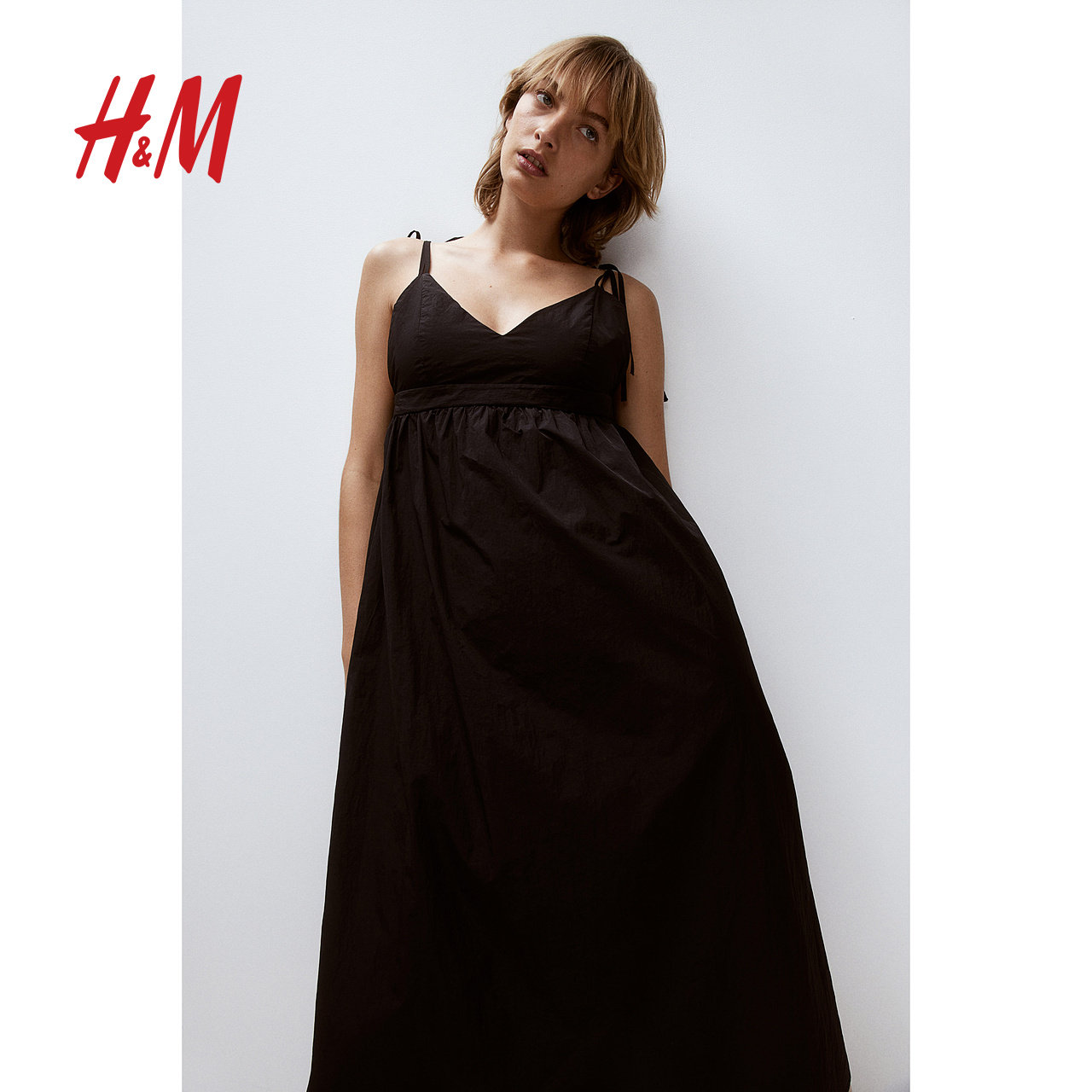 HM女装春季仙女风无袖吊带中裙尼龙款连衣裙1217283