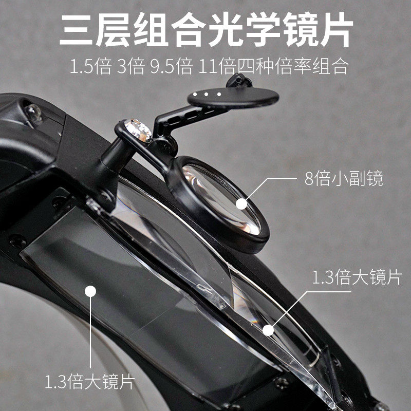 头戴式放大镜维修用带led灯11倍电子电路文玩珠宝钱币鉴定充电