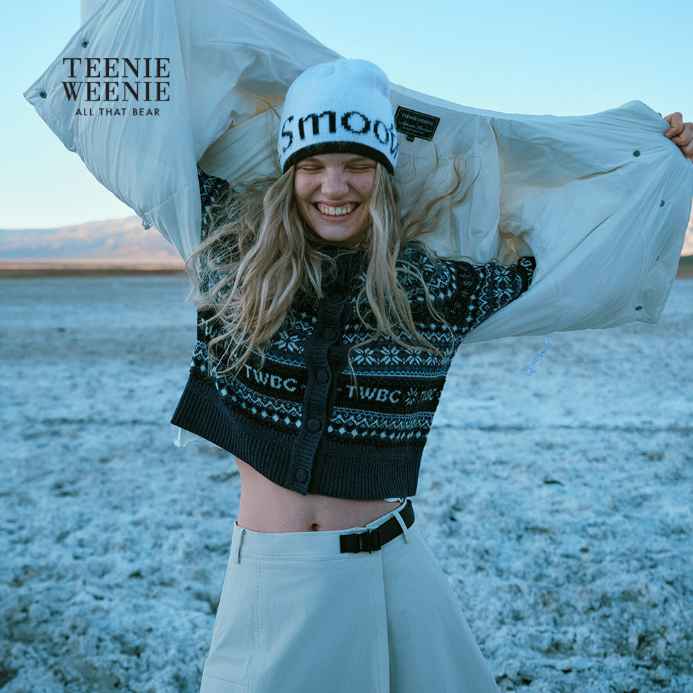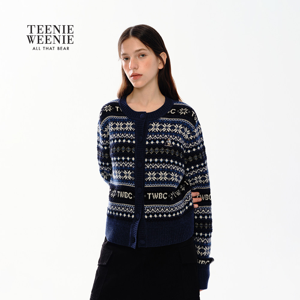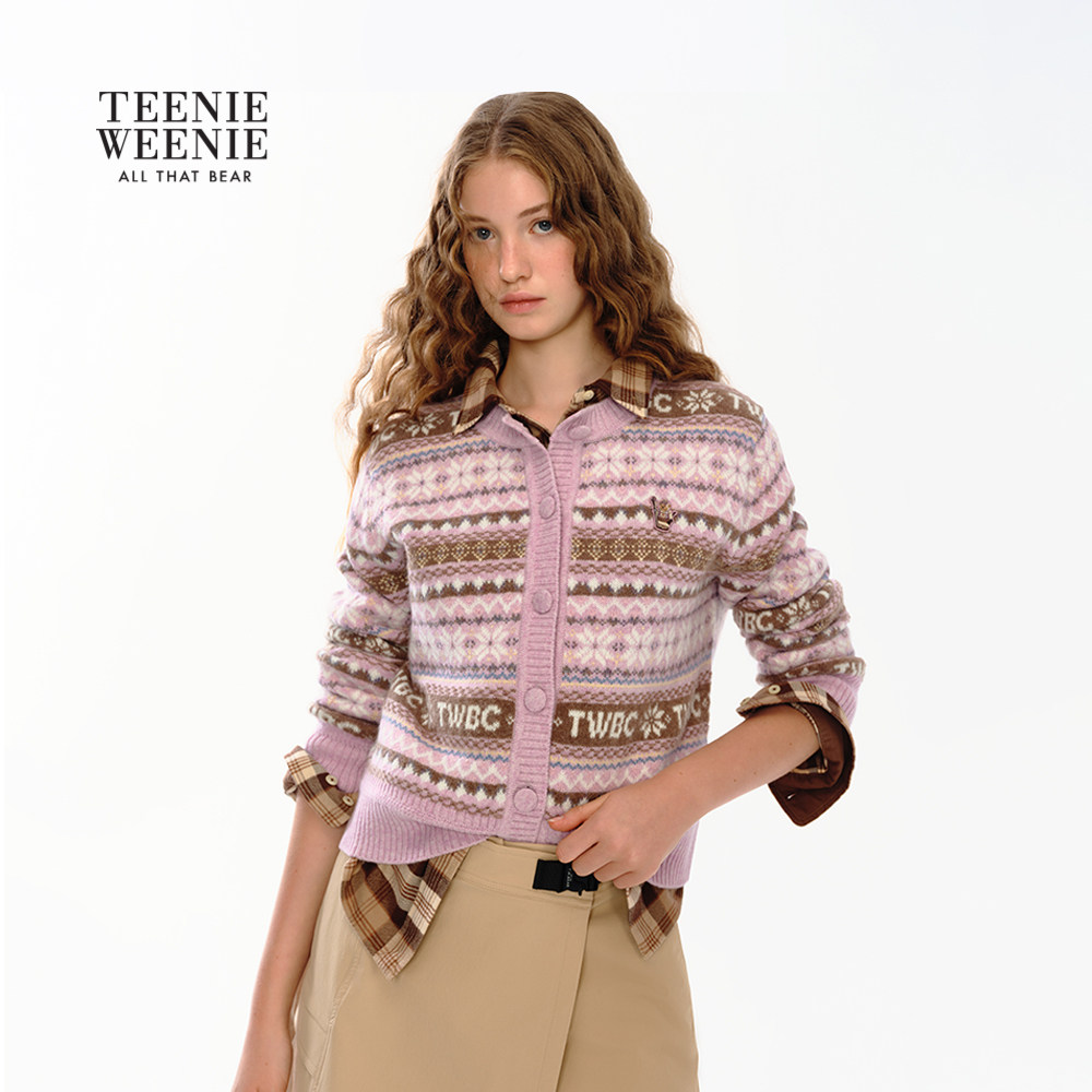 TeenieWeenie小熊女装毛针织衫2025冬新款费尔岛提花圆领毛衣开衫