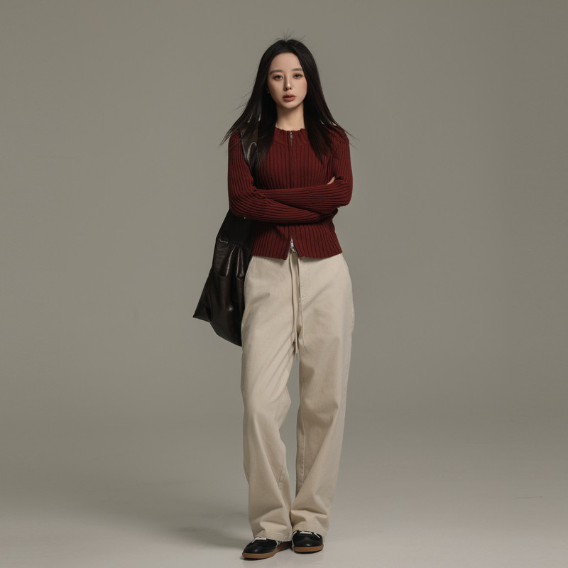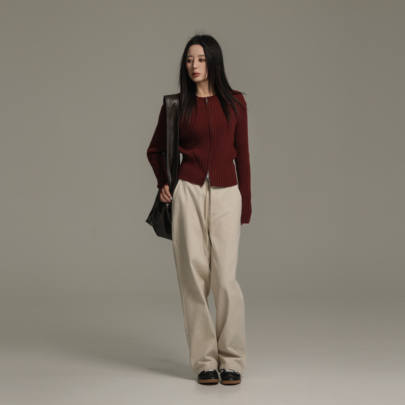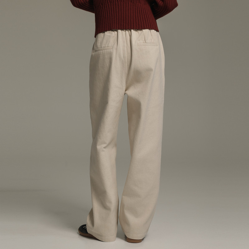 AIRIQI冬季新款休闲通勤斜纹抽绳直筒廓形磨毛弯刀裤女AI44CK219