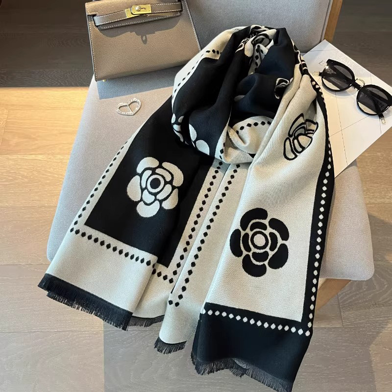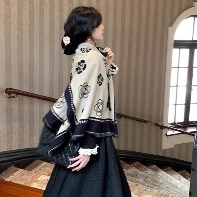 黑色山茶花披肩女外搭2025新款高级感气质正反两用披风斗篷围巾