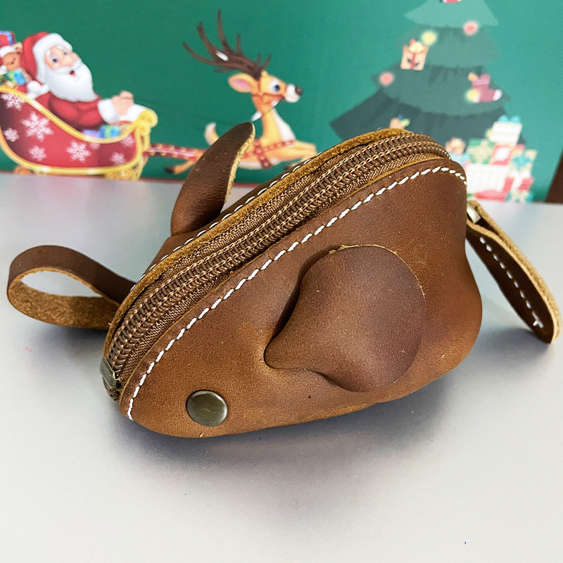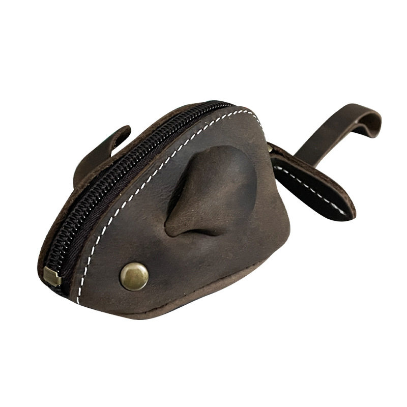 亚马逊 真皮复古卡通零钱包钥匙包 头层牛皮迷你创意可爱硬币钱包