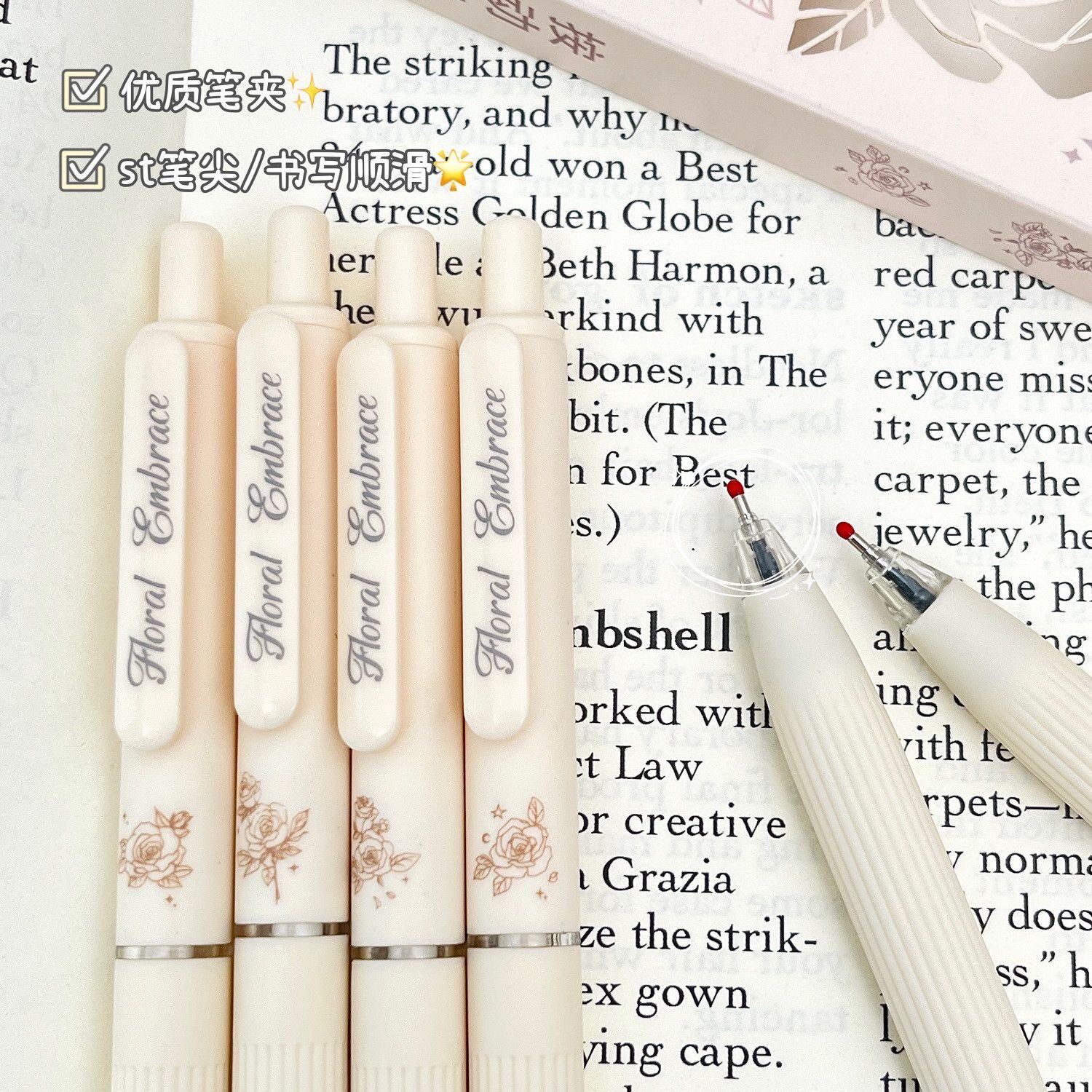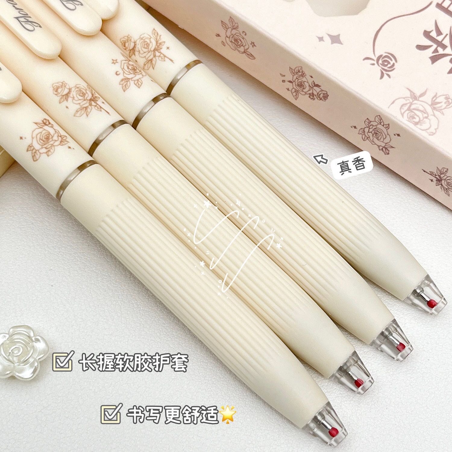 玫瑰霜茶静音按动笔高颜值中性笔黑笔签字笔学生不漏墨刷题速干笔