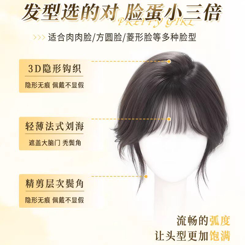 假发女片头顶补发无痕遮白发增发量蓬松颅顶自然前额仿真发假刘海