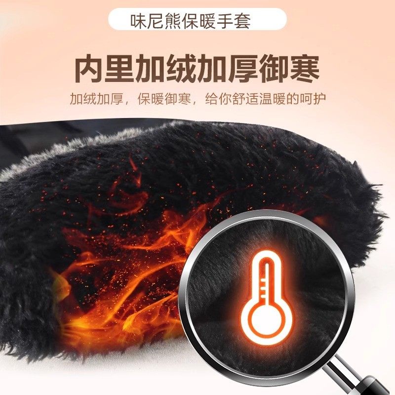 滑雪手套女冬季加厚绒哈喽kitty骑行开车保暖棉手套防风寒可触屏