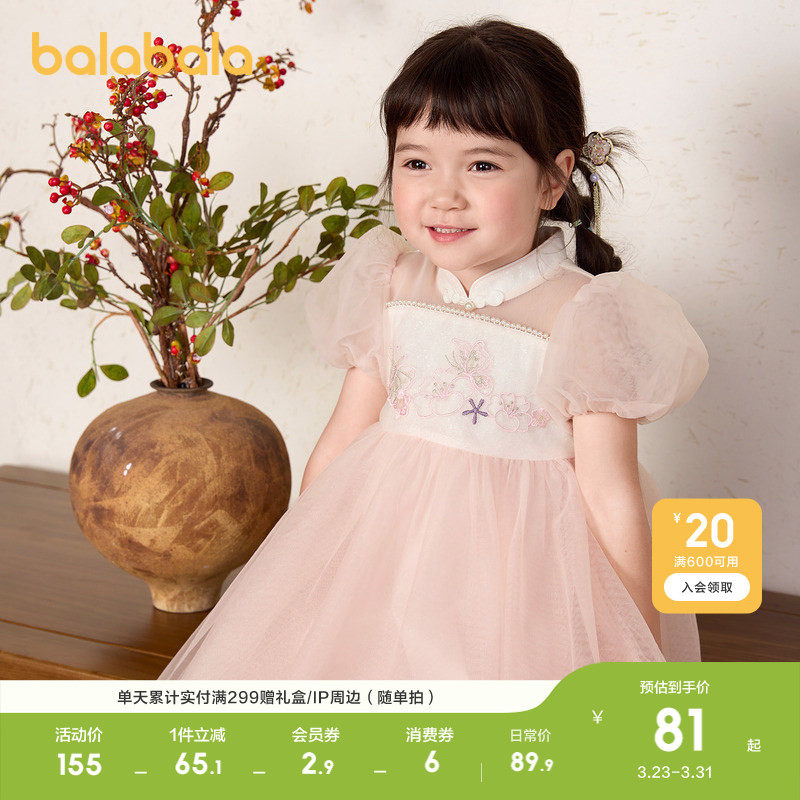 巴拉巴拉童装女童公主裙夏季新款儿童连衣裙国风小童宝宝网纱裙子