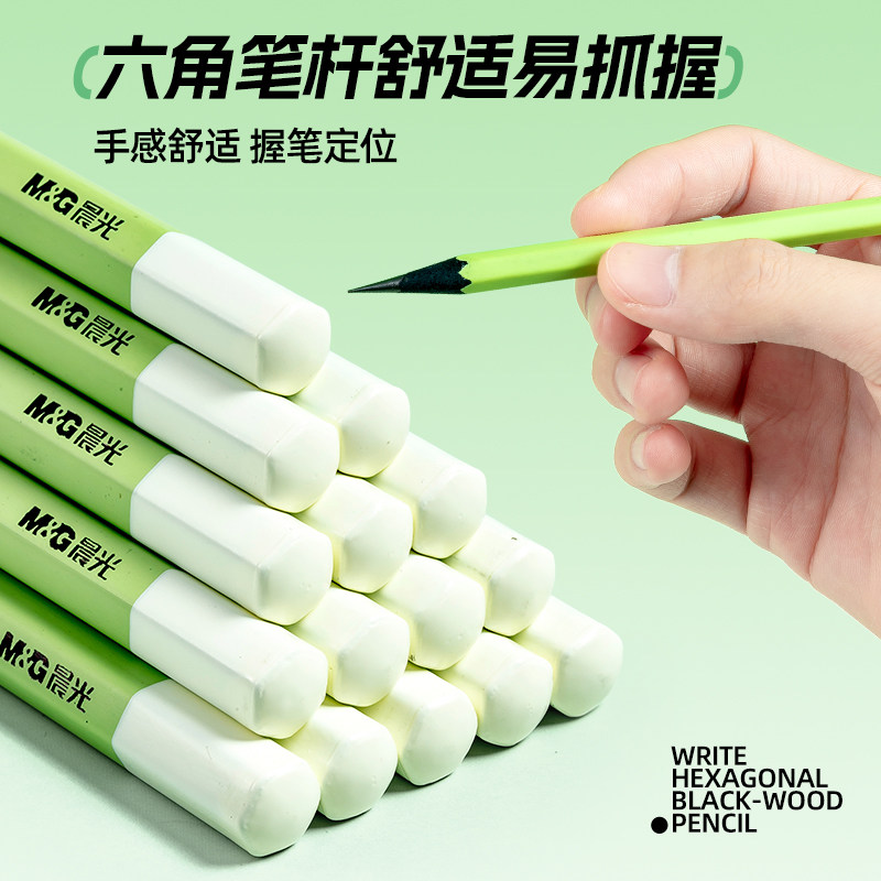 晨光黑木铅笔高颜值小绿杆小学生铅笔高端黑木练字无铅毒不易断