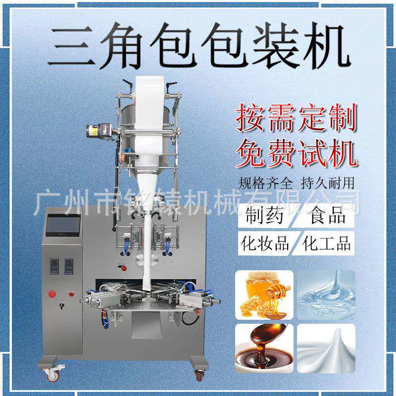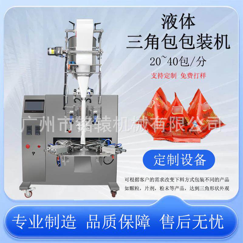 液体三角包包装机,广州厂家小样洗发水护肤乳液自动包装机