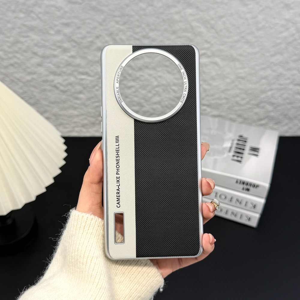 适用/小米12Sultra手机壳 三包相机款 PC金属烤漆+PU贴皮+金属字 商务风防摔手机壳