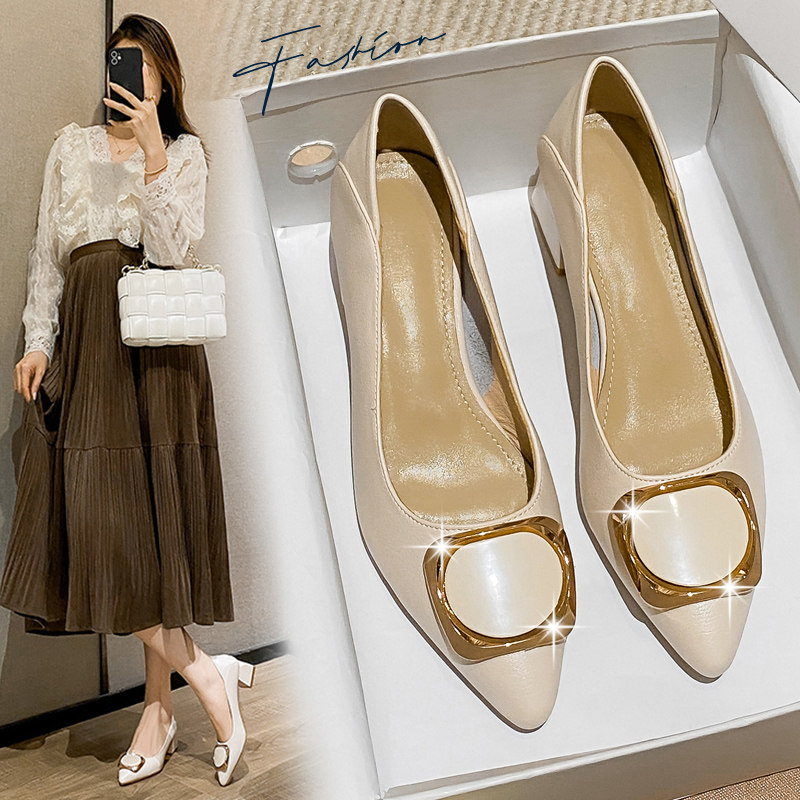 【明星同款|静音系列】千百度练习曲裸色高跟鞋真皮通勤法式单鞋
