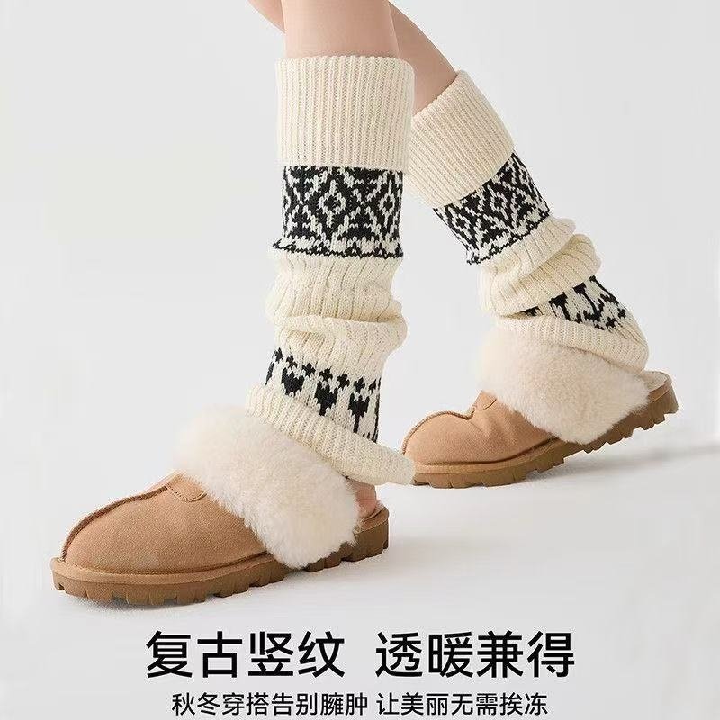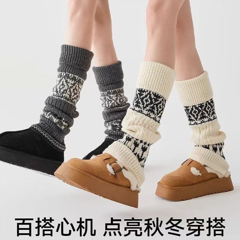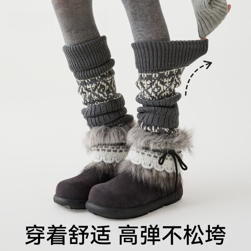 费尔岛堆堆袜套女秋冬保暖加厚腿套配勃肯鞋打底裤灰色复古小腿袜