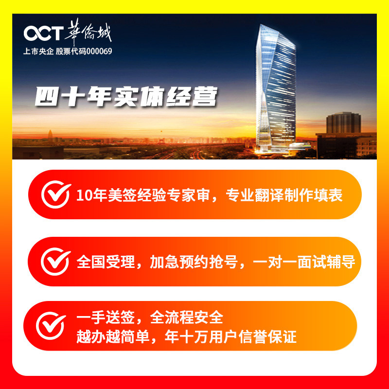 【省心】华侨城上市央企品牌,40年实体运营,信息安全有保障,放心签 【高效】手机在线10分钟填表上传,数字化办签,节省不止2小时 【精确】全程进度同步可视化,一切尽在掌握中 【懂心】10年以上签证经验团队,一站式服务,懂业务更懂心