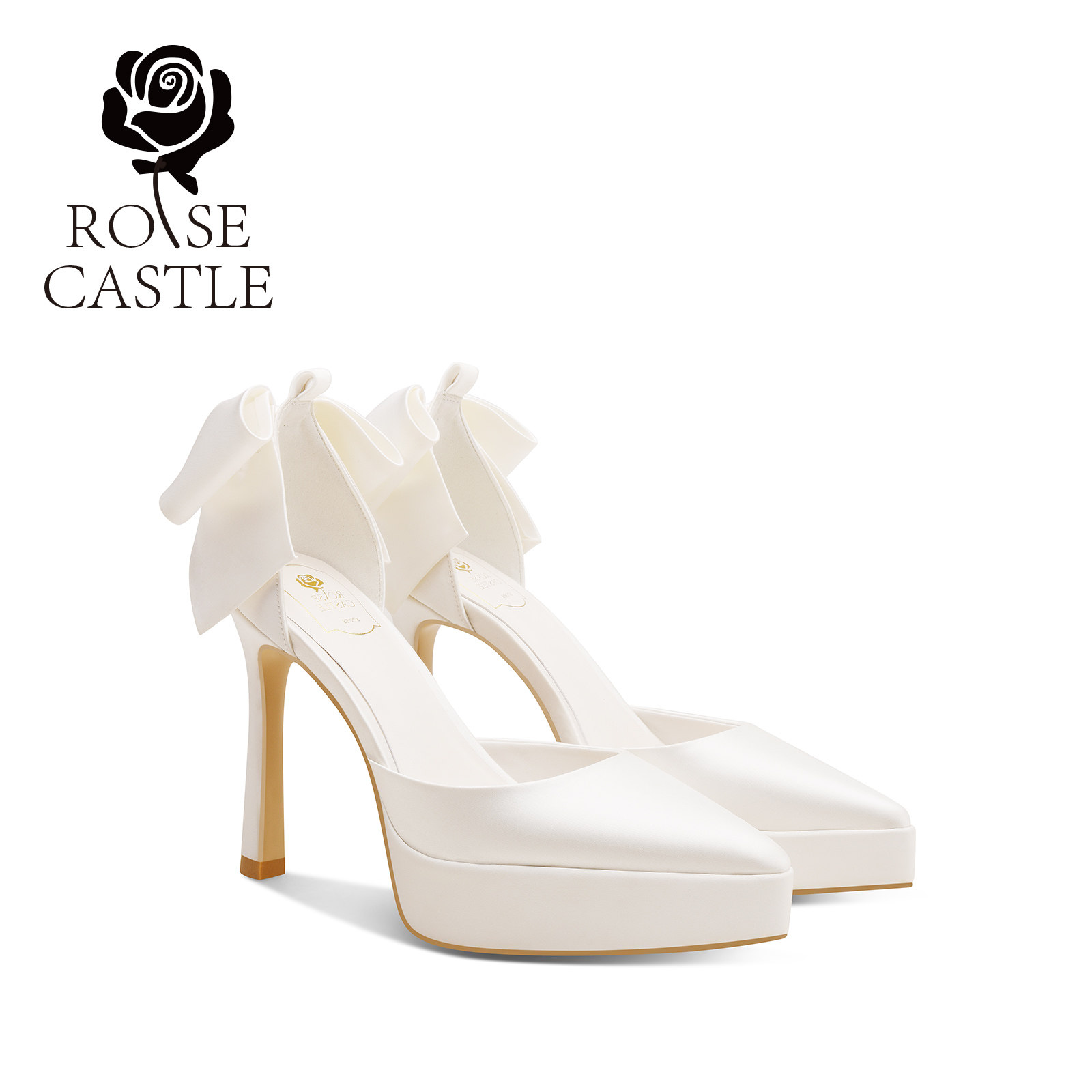 rose castle蝴蝶结婚鞋女 小个子防水台白色主婚纱新娘婚鞋不累脚
