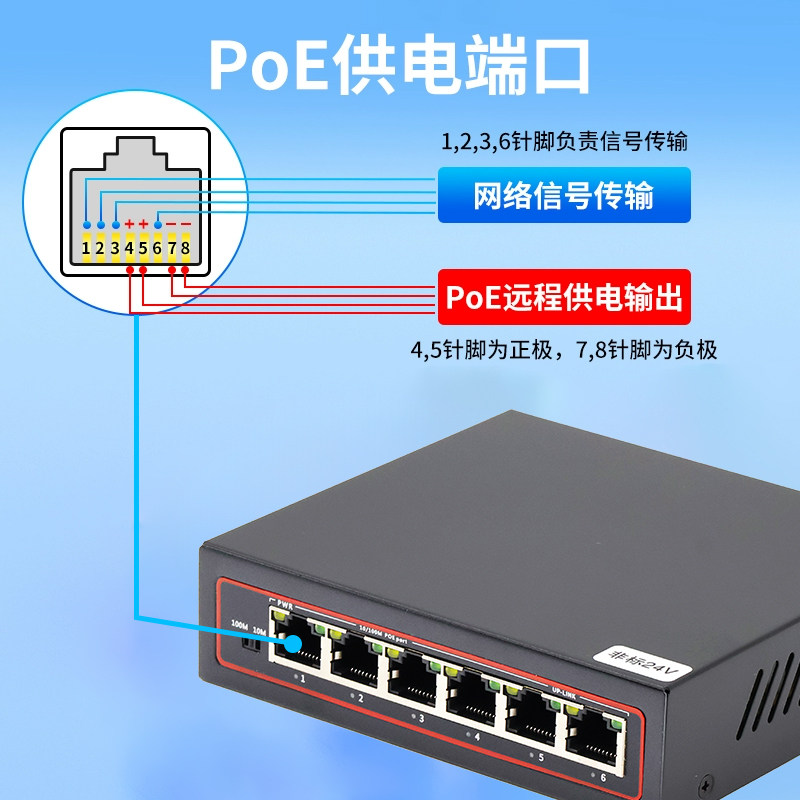 24v交换机poe 非国标poe交换机监控专用12v供电4口8口16口24口百兆千兆交换器网络欣视安摄像头楼宇可视对讲