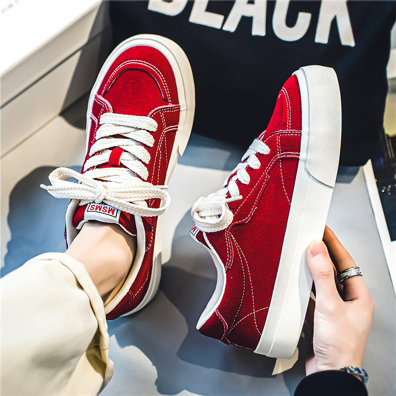 顽刻官方海军蓝春季校园风W系列翻毛皮帆布拼接男女国潮滑板鞋