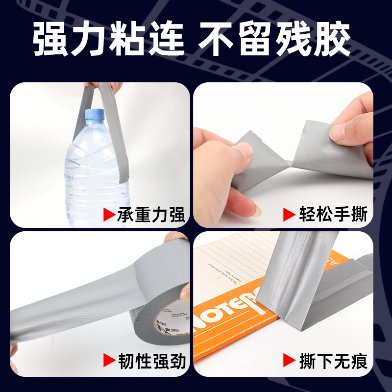 3m3903强力布基胶带单面加厚高粘度超强固定展会地毯拼接保护膜防水耐磨防潮易手撕不残胶无痕多功能布基胶带