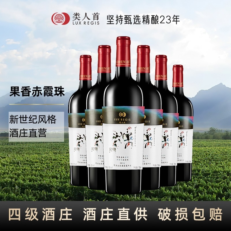 宁夏类人首红酒岩画果香型赤霞珠干红葡萄酒750ml整箱装酒庄陈酿