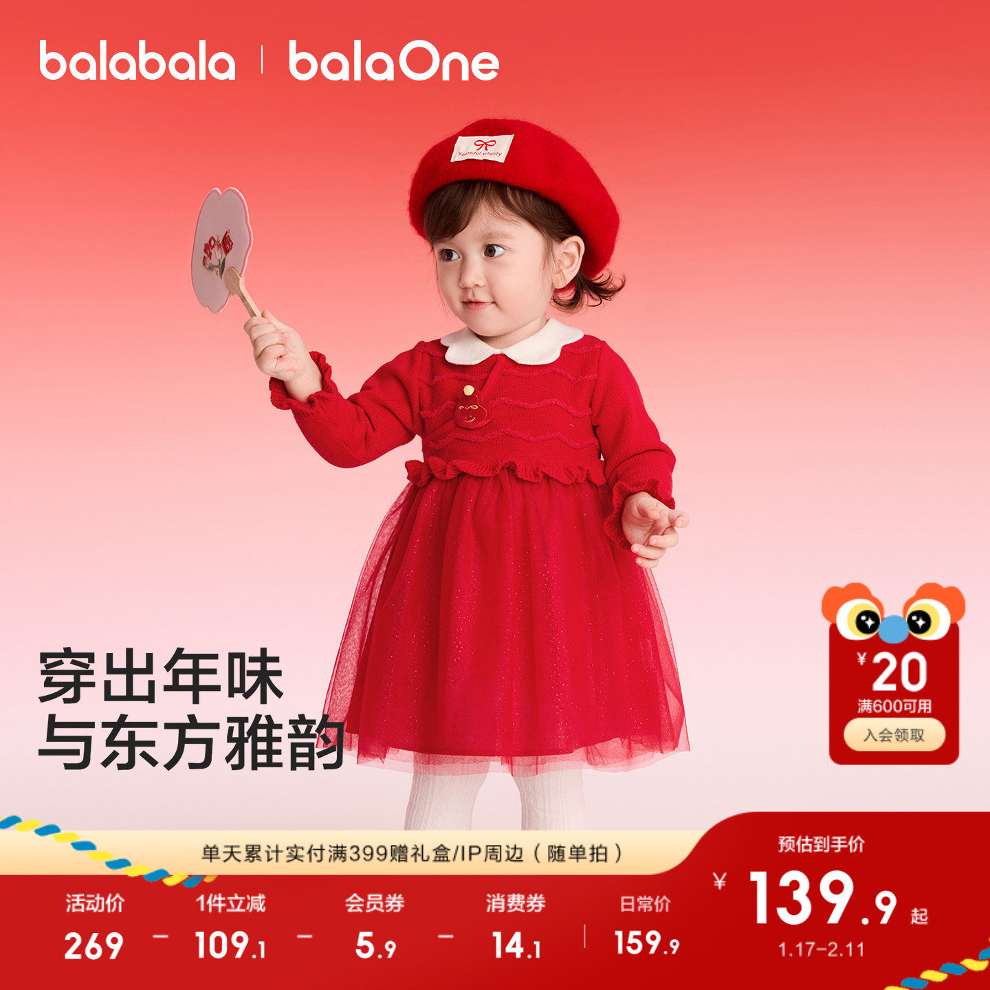 巴拉巴拉balaOne童装女公主裙2025秋冬新款儿童连衣裙针织网纱裙