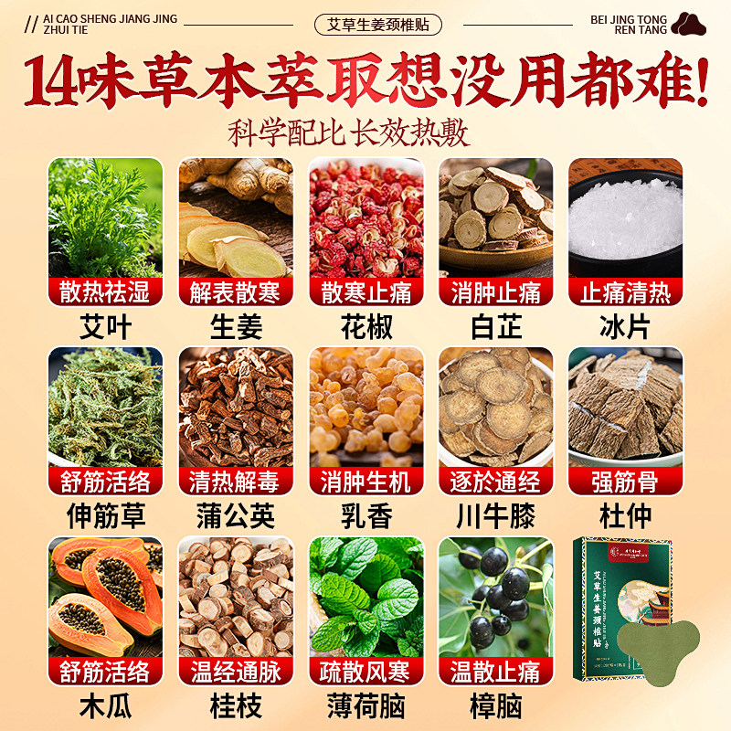 北京同仁堂艾草颈椎贴颈椎病专用贴膏热敷贴富贵包官方旗舰店正品
