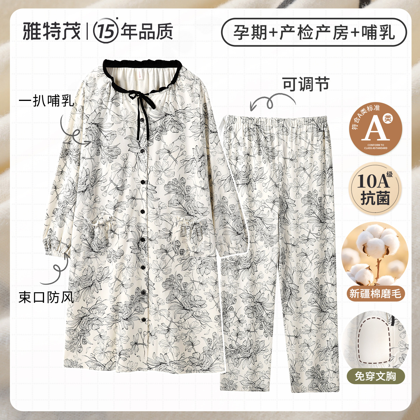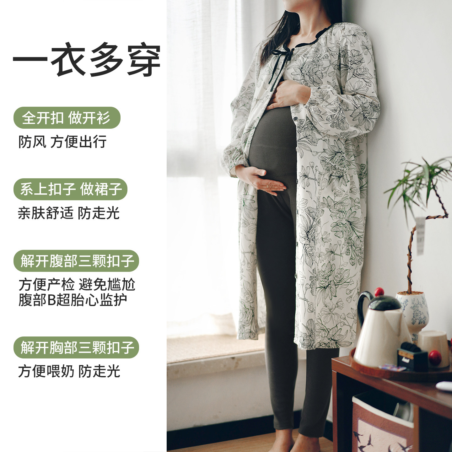 【送胸垫】孕妇春秋冬哺乳睡衣产后月子孕妇产房待产连衣裙2件套