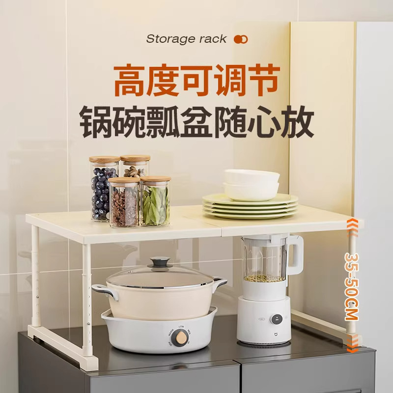可伸缩厨房置物架台面橱柜隔板分层架柜内调料收纳锅架桌面小架子