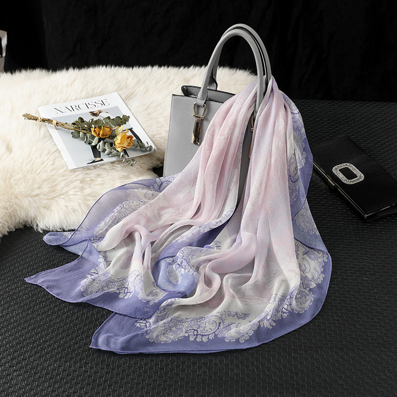 恒源祥淑女撞色真丝围巾大方丝巾纱巾旅游披肩轻薄韩版桑蚕丝春秋