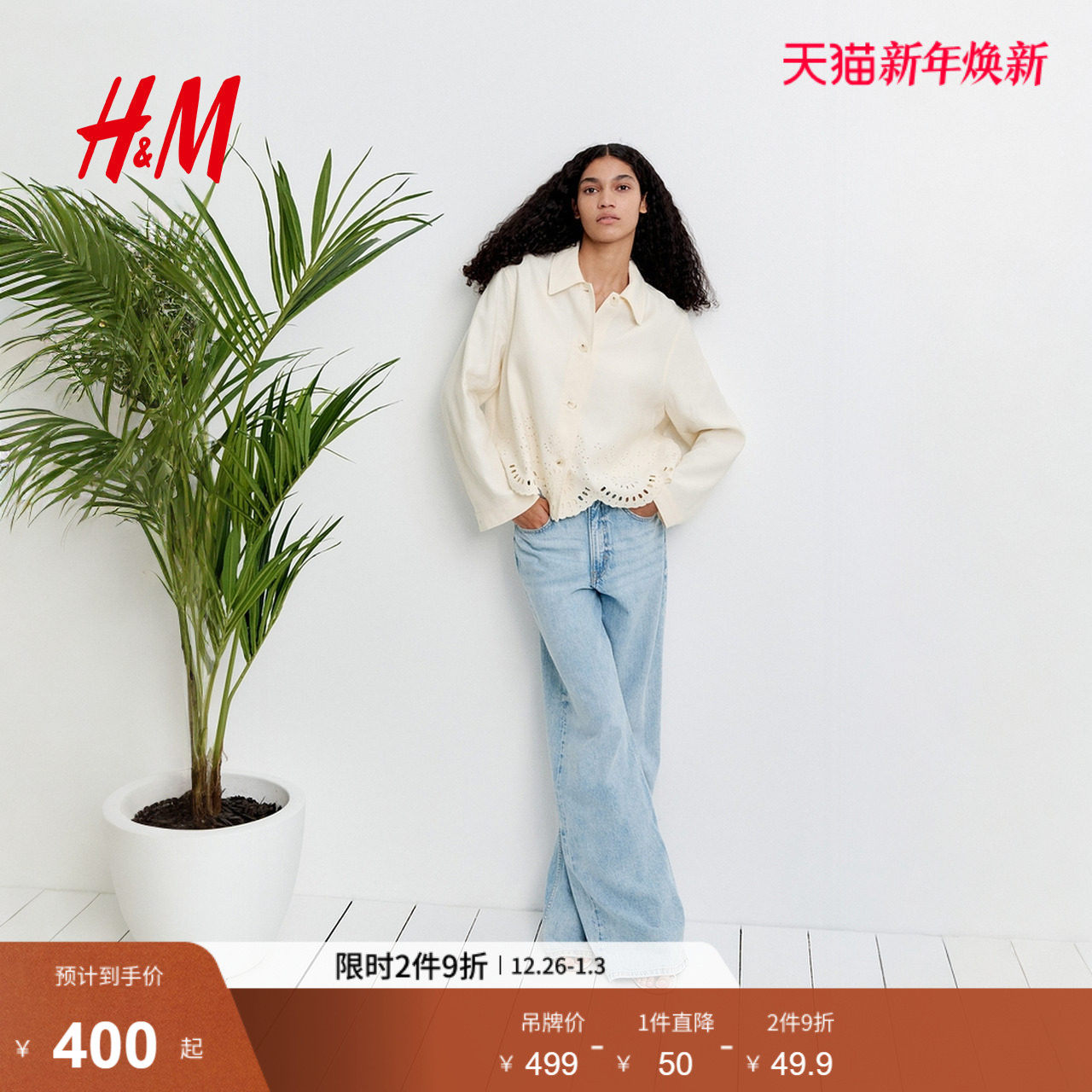 HM短外套2025年冬季新款时尚女装亚麻混纺衬衫式外套1266922