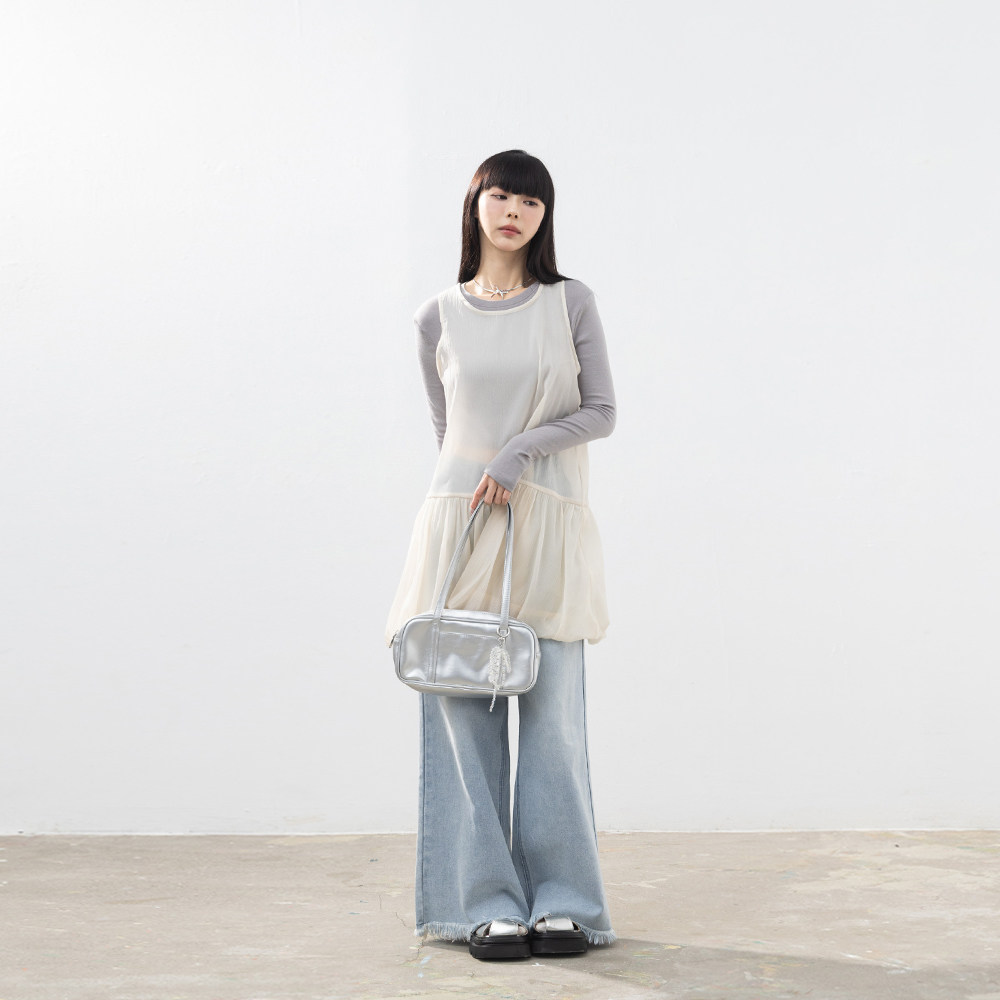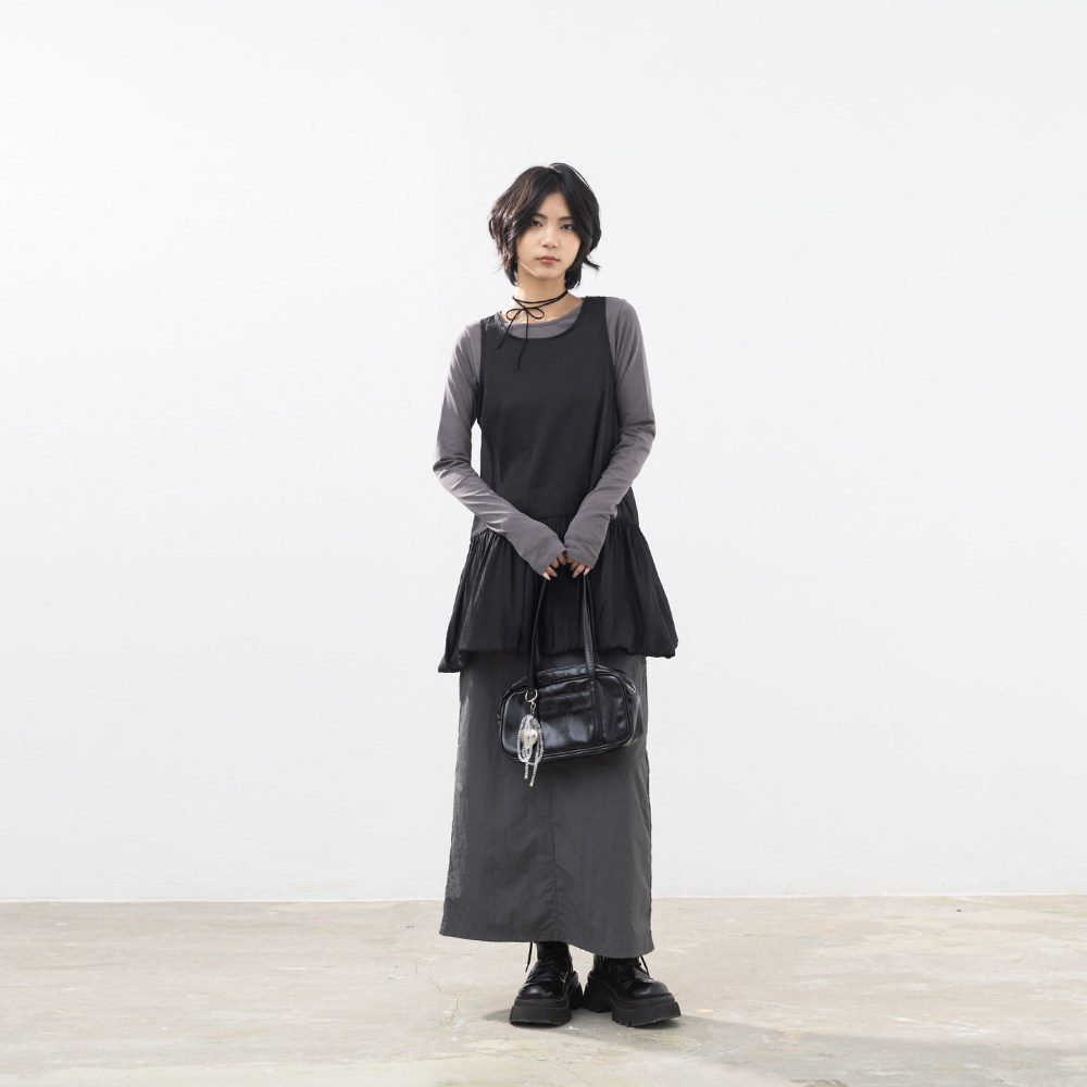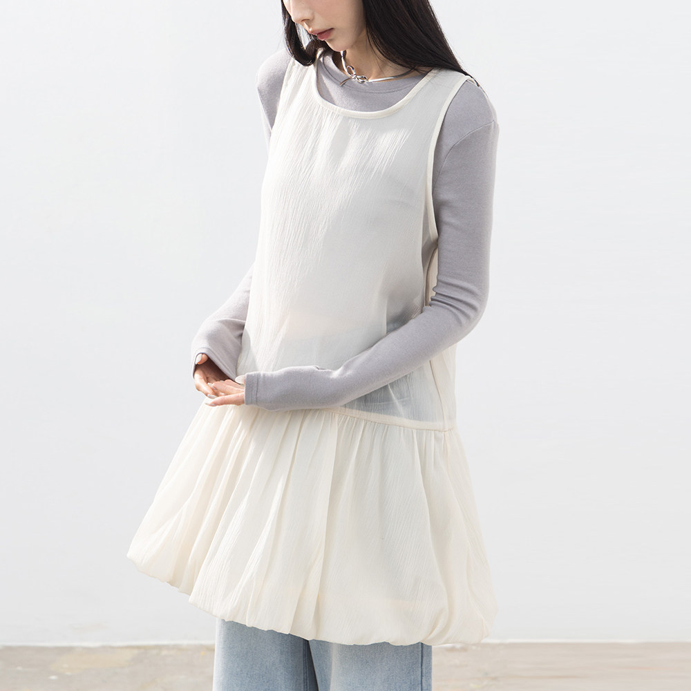QUEENSHOP 2025秋冬新品女装澎澎气球透肤上衣短连衣裙01099201