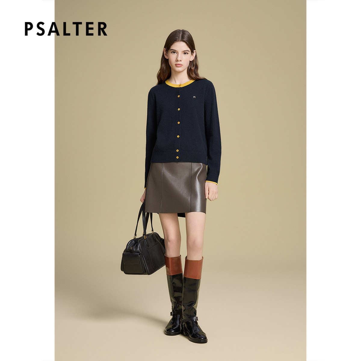 诗篇专选学院风圆领拼色纽扣长袖羊绒针织开衫女2025冬季新款