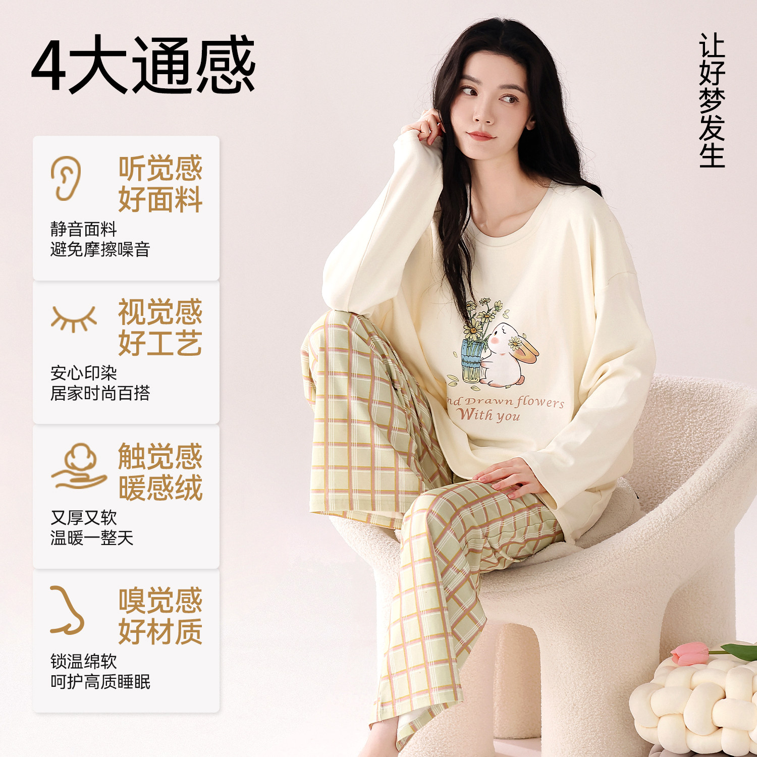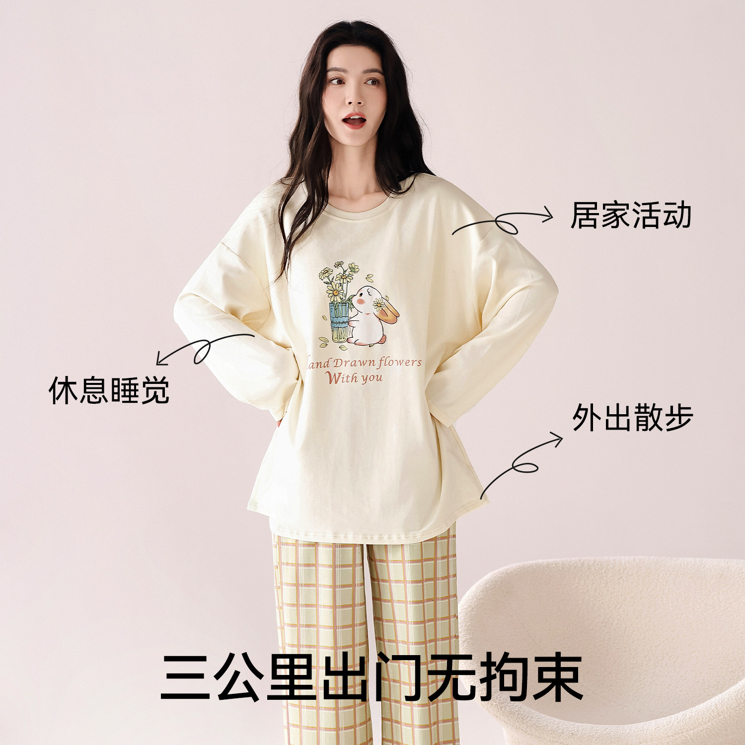 都市丽人睡衣女款纯棉带胸垫2026年新款长袖卡通可爱风女士家居服