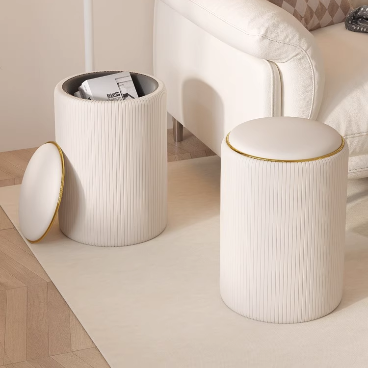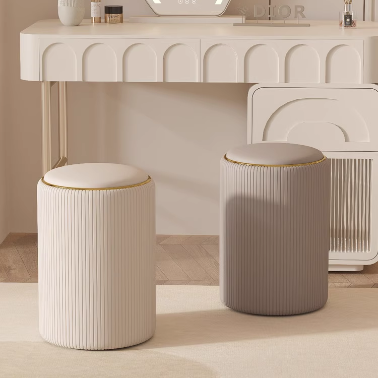 2025轻奢梳妆凳家用梳妆台椅子美容美甲奶油风卧室化妆凳子可储物圆凳