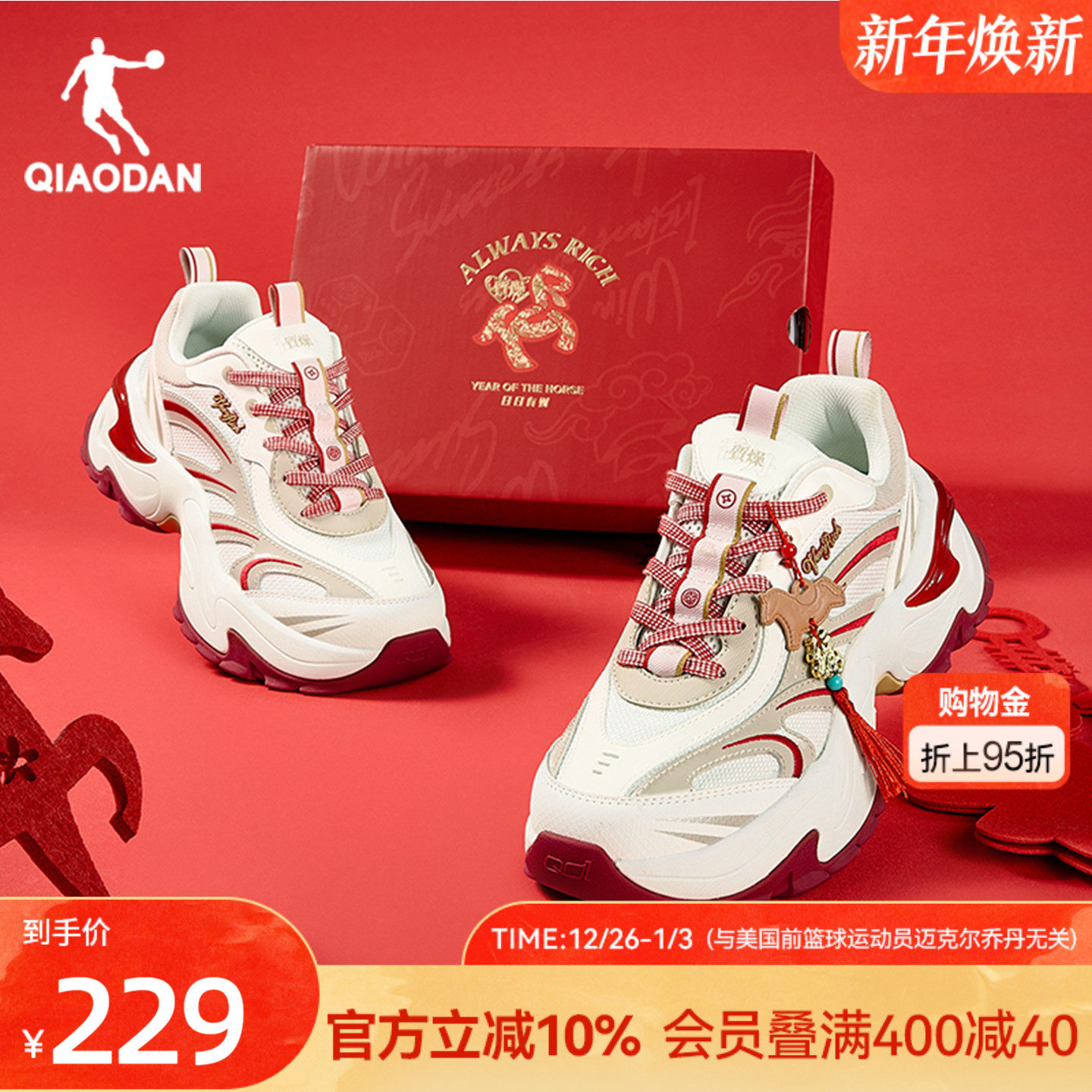 乔丹蝴蝶鞋新年红色休闲鞋女运动鞋2026春季新款厚底增高老爹鞋子