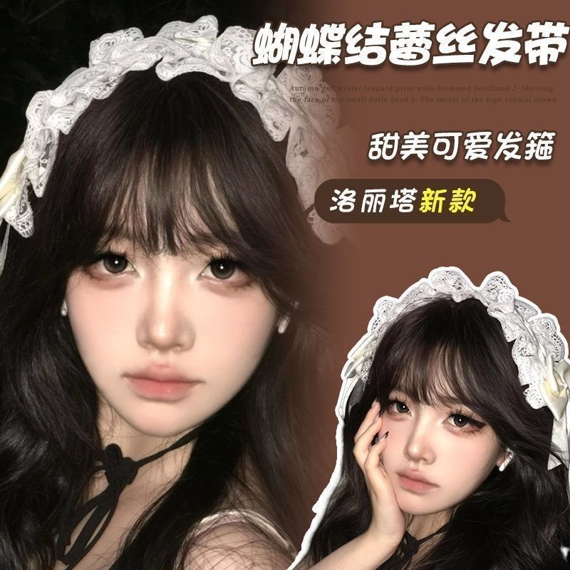 安妮的早餐白色蝴蝶结蕾丝发带女甜美可爱发箍洛丽塔头箍发饰新款