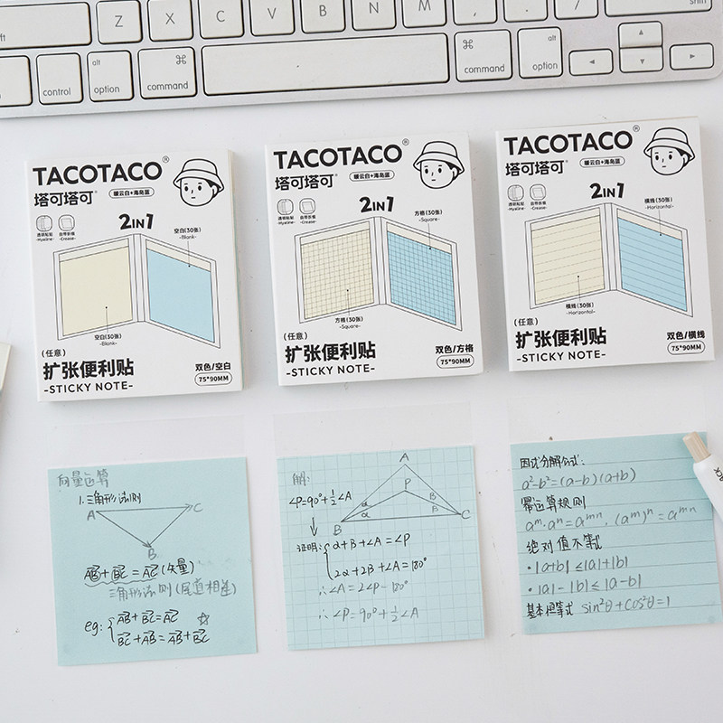 TACOTACO扩张便利贴不遮挡可折叠学生用可撕有粘性便签贴纸考研任意贴初高中生记笔记贴三合一订正错题便签纸